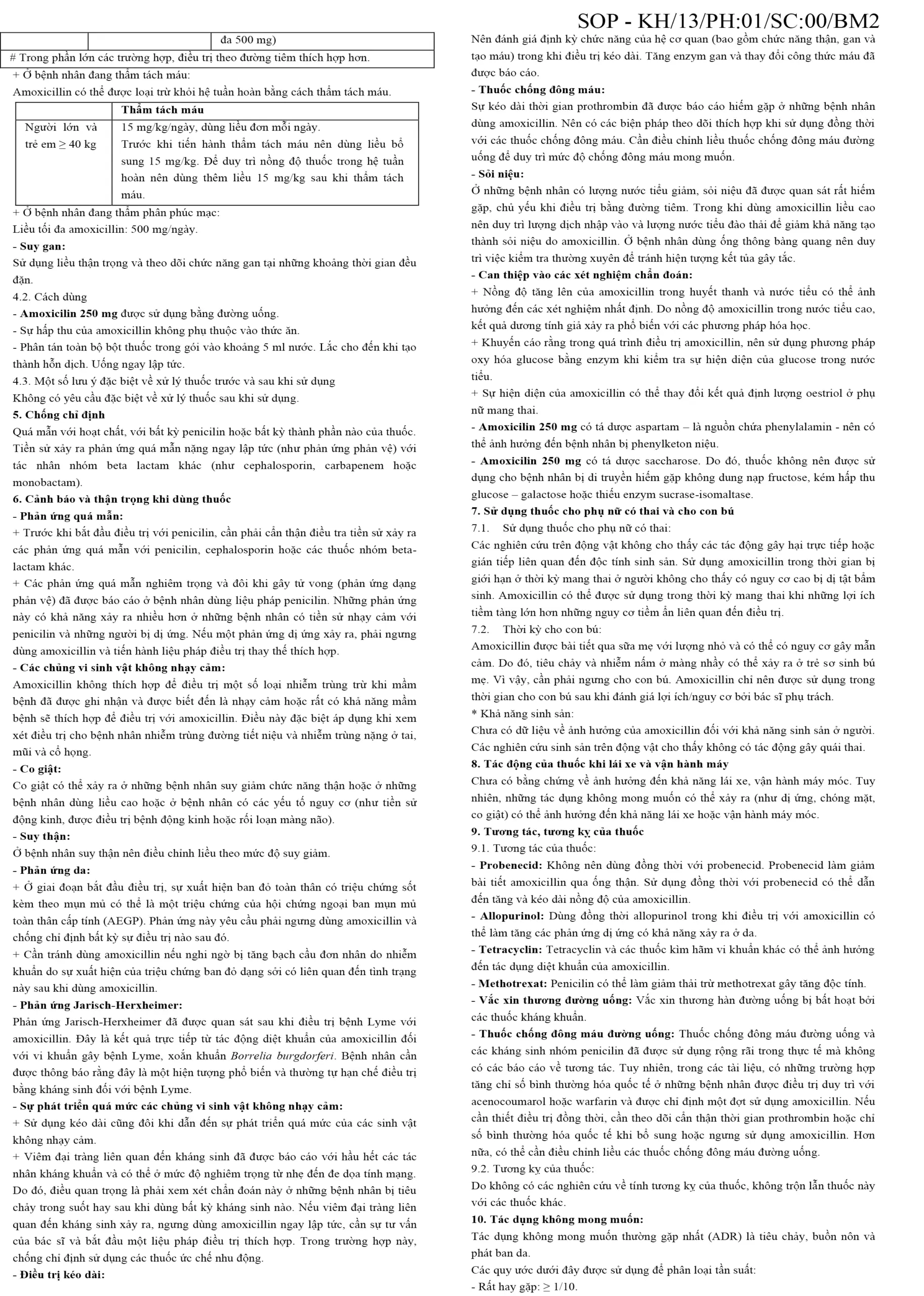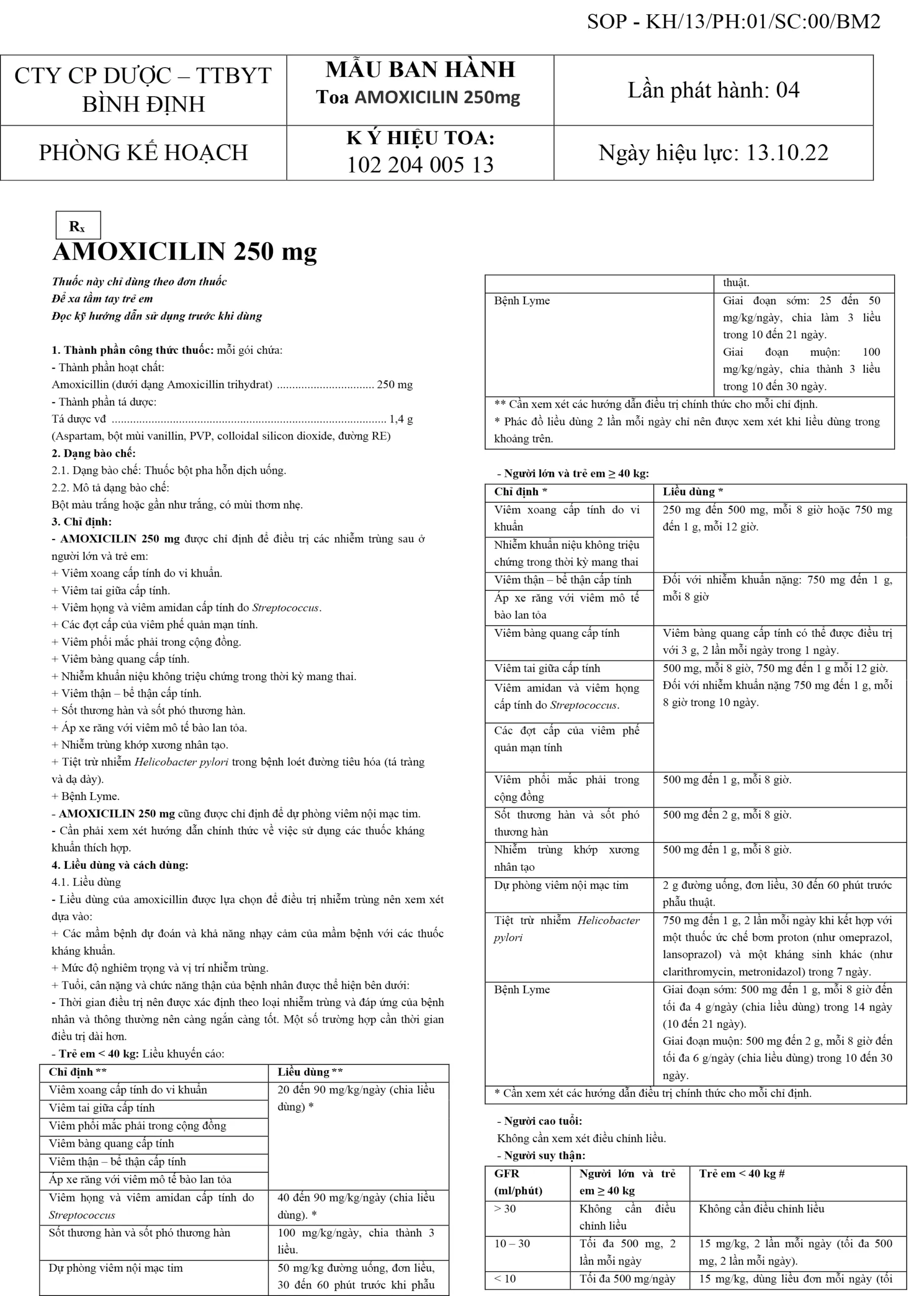 - Liều tối đa amoxicillin: 500 mg/ngày.