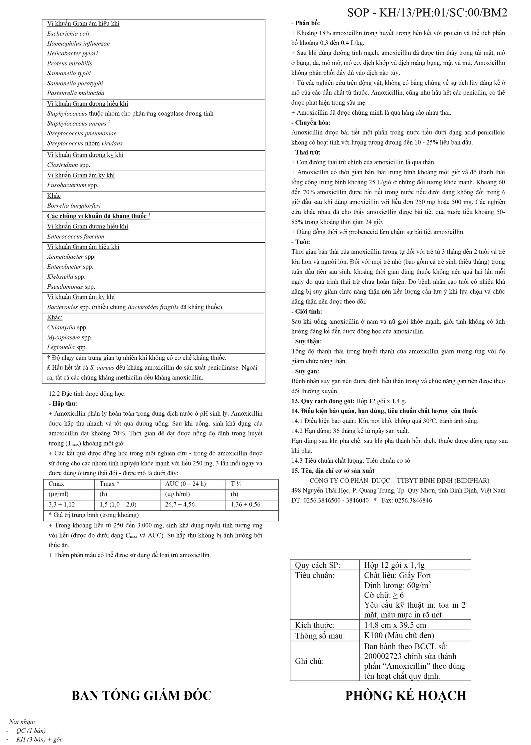 - Amoxicillin có nồng độ cao trong dịch mật và một phần thải qua phân.