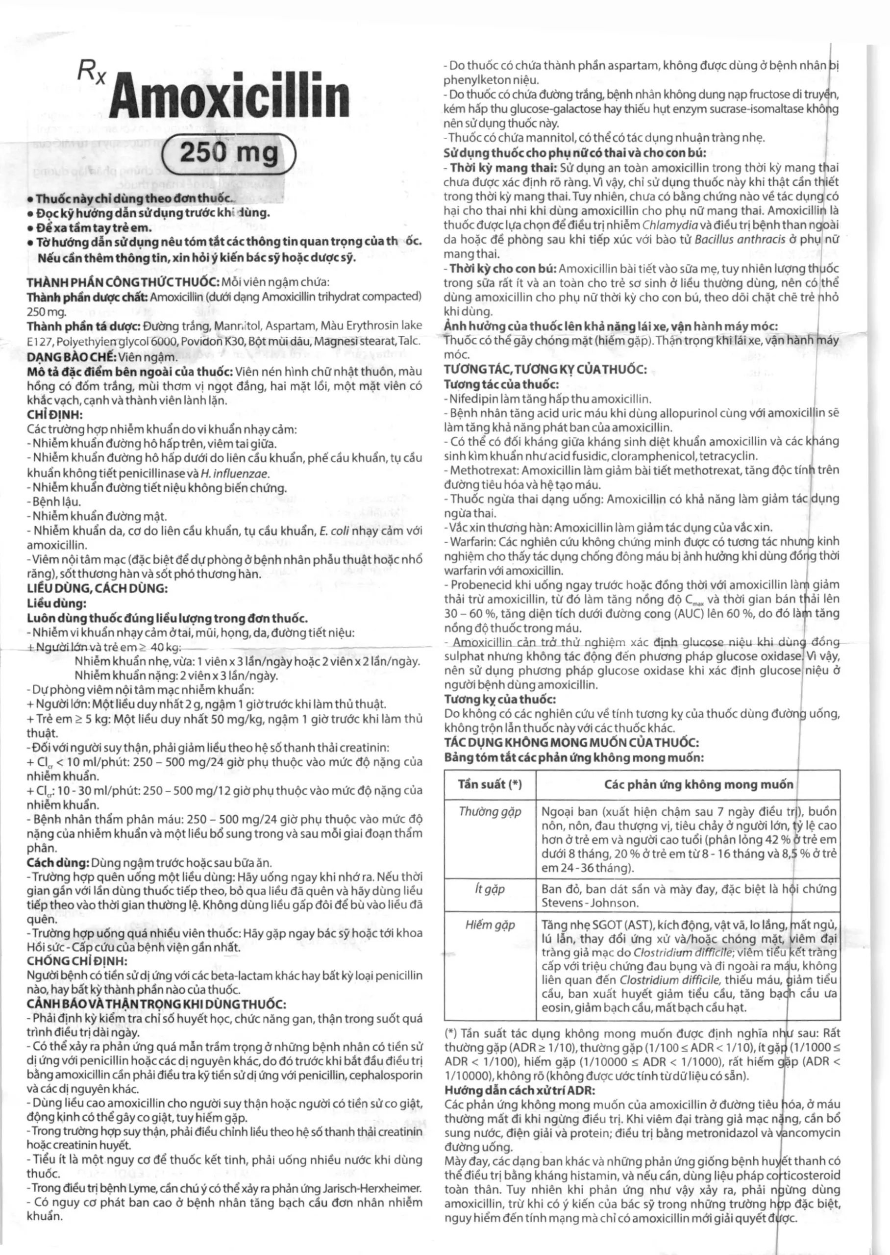 - Khi sử dụng thuốc Amoxicillin 250 mg Domesco có thể sẽ gặp phải các tác dụng không mong muốn (ADR).