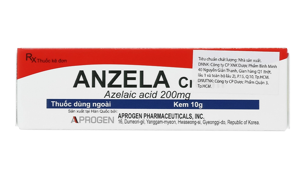 - Azelaic acid là một loại acid dicarboxyxlic nguồn gốc từ các loại hạt ngũ cốc như lúa mì, lúa mạch hay lúa mạch đen. Acid này có tác dụng chống nám thông qua việc ngăn chặn quá trình hình thành enzym tyrosinase – một loại enzym cần thiết cho quá trình hình thành nám. Cơ chế tác động của thuốc là làm bình thường hóa trở lại quá trình sừng hóa (giảm độ dày lớp tế bảo sừng thượng bì, giảm kích thước và số lượng các hạt keratohyalin, giảm filaggrin). Thuốc còn có tác dụng chống lại Propionibacterium acnes và tụ cầu da là các căn nguyên có vai trò trong hình thành mụn trứng cá.