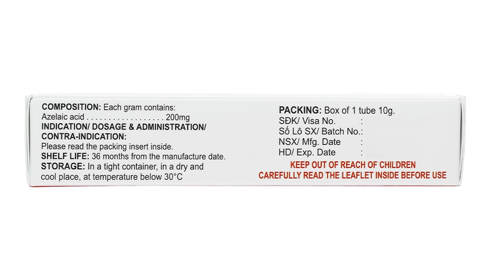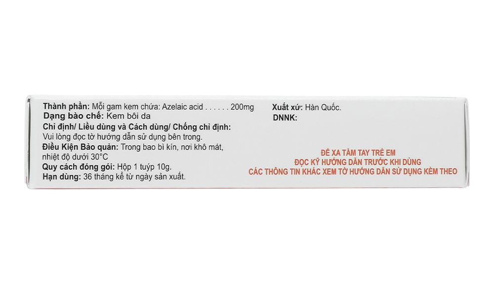 - Cảnh giác: Đã có báo cáo về trường hợp giảm sắc tố da sau khi sử dụng acid azelaic. Vì acid azelaie chưa được nghiên cứu kỹ trên bệnh nhân da sẫm màu, những bệnh nhân này nên được quan sát kỹ những dấu hiệu về giảm sắc tố da.