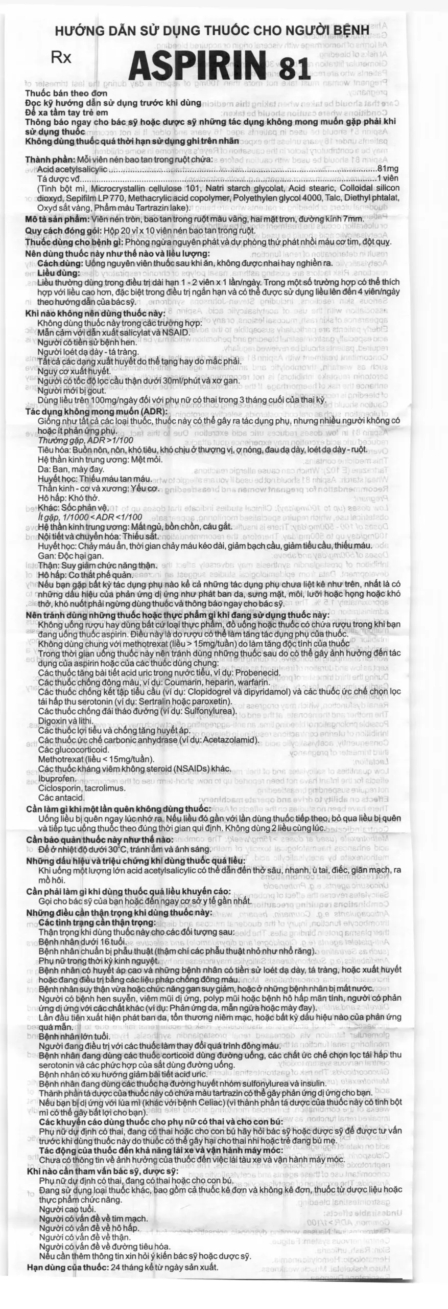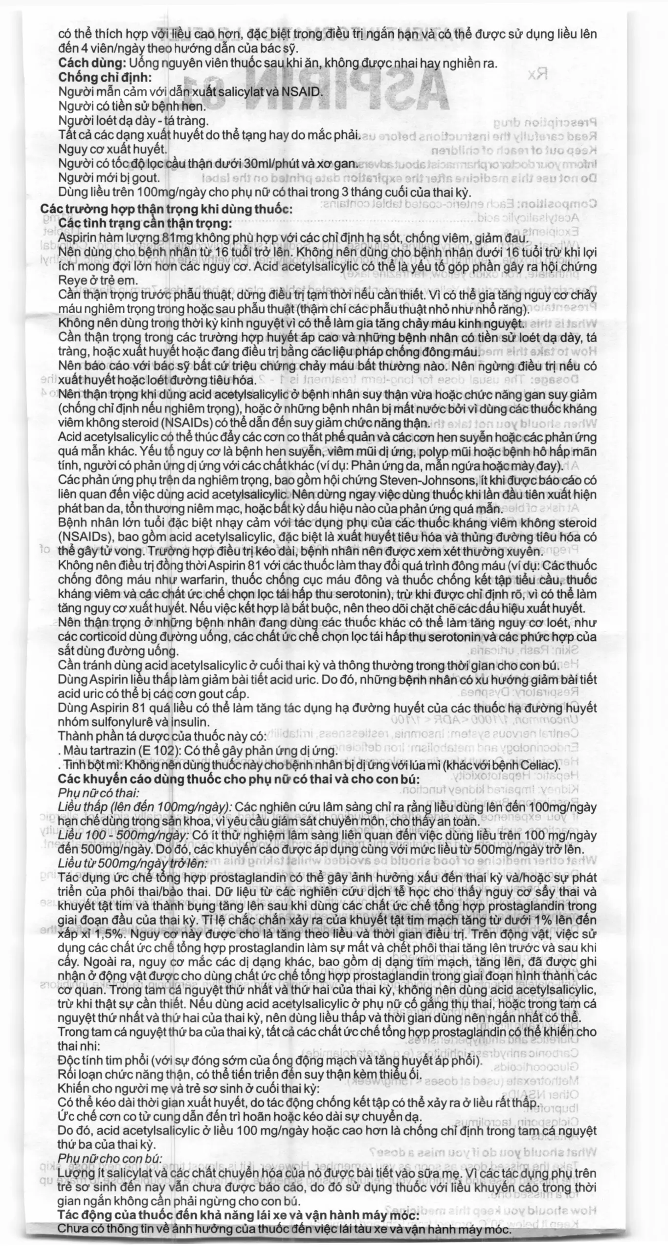 - Aspirin hàm lượng 81 mg không phù hợp với các chỉ định hạ sốt, chống viêm, giảm đau.