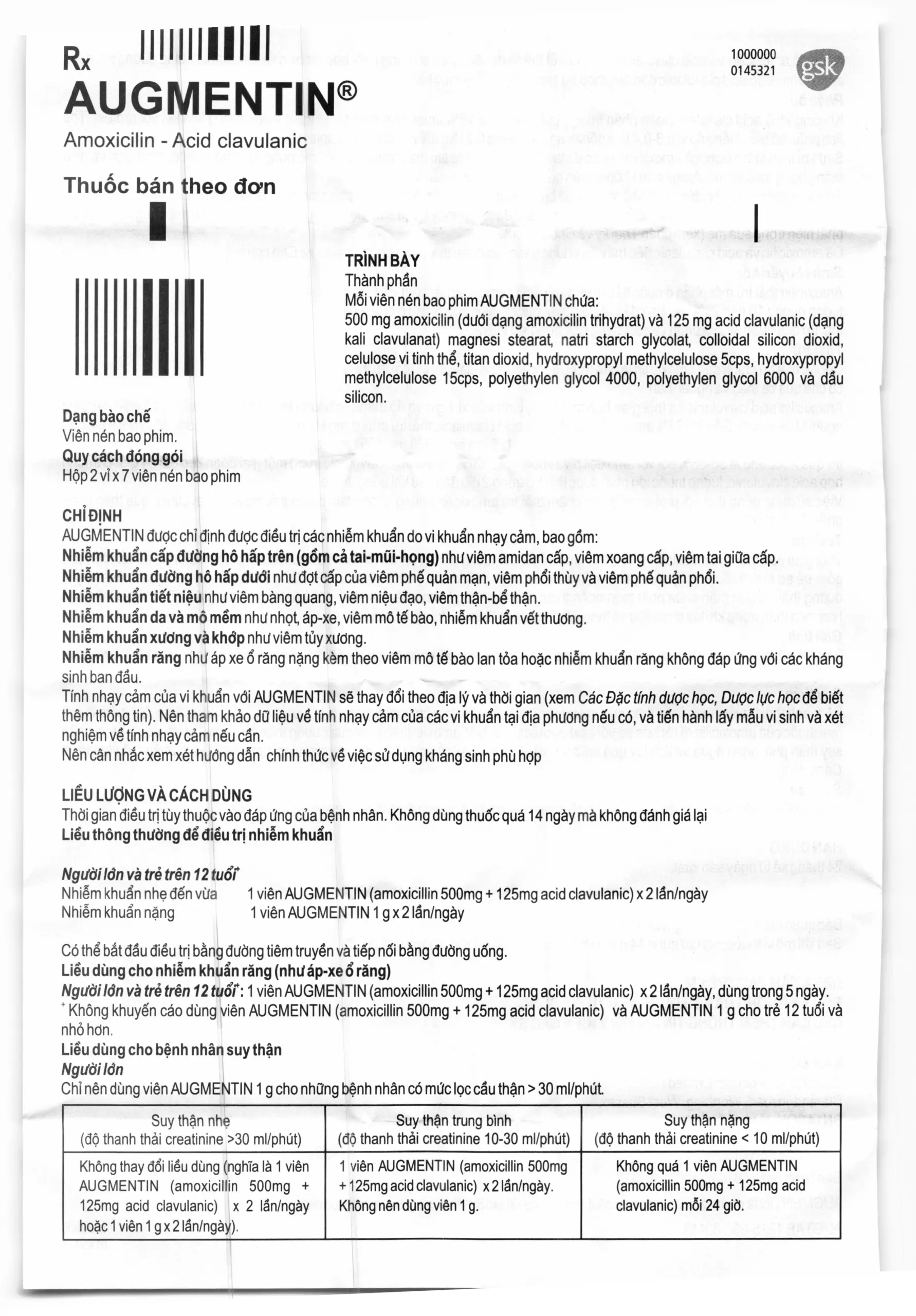 Augmentin 625mg GSK 14 viên – Thuốc điều trị nhiễm khuẩn