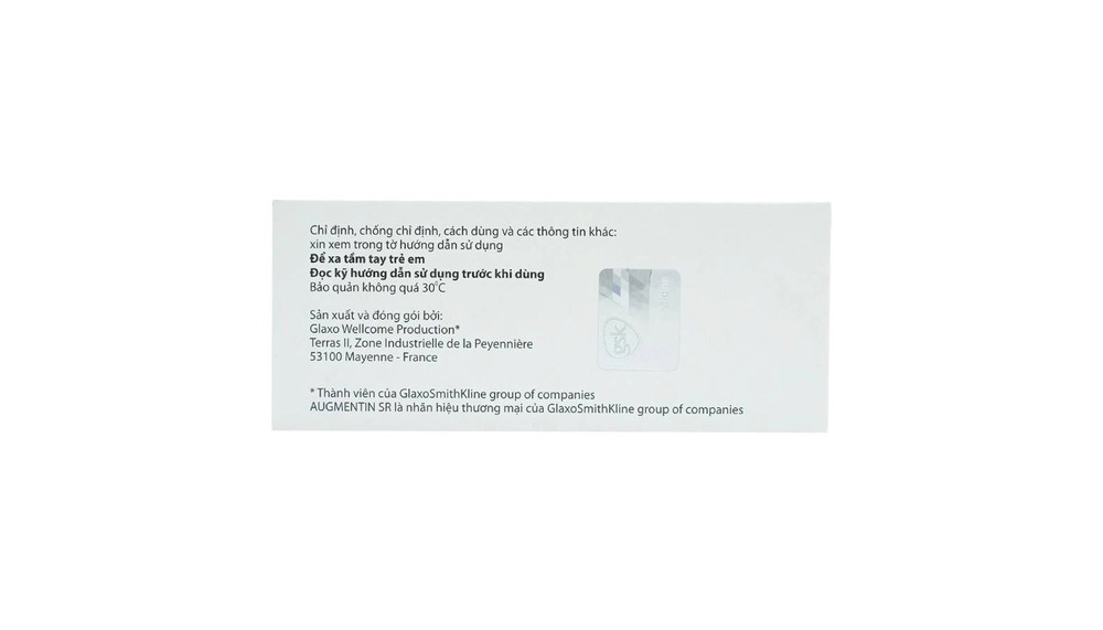 - Augmentin SR chỉ được chỉ định cho người lớn ≥ 16 tuổi.