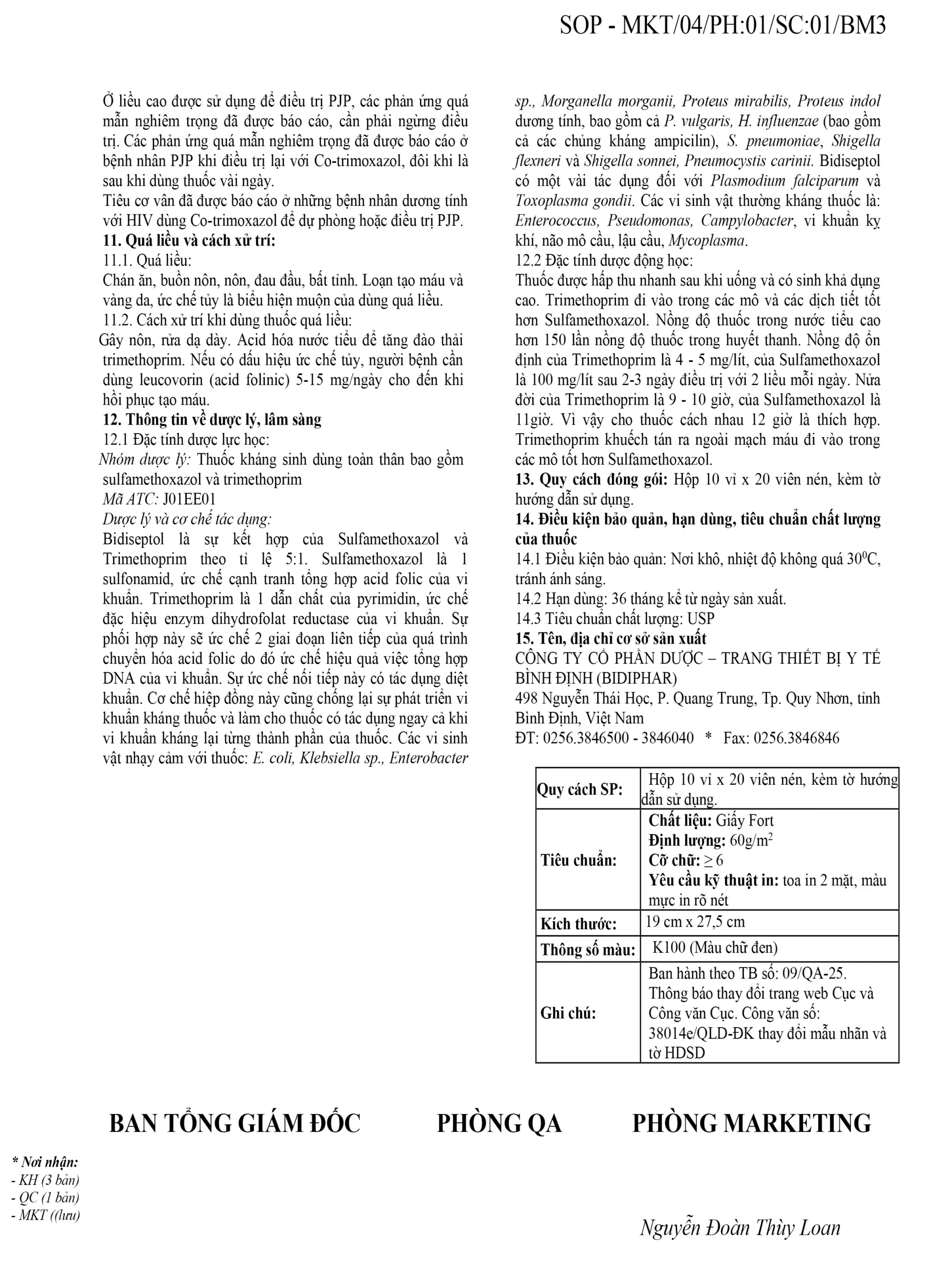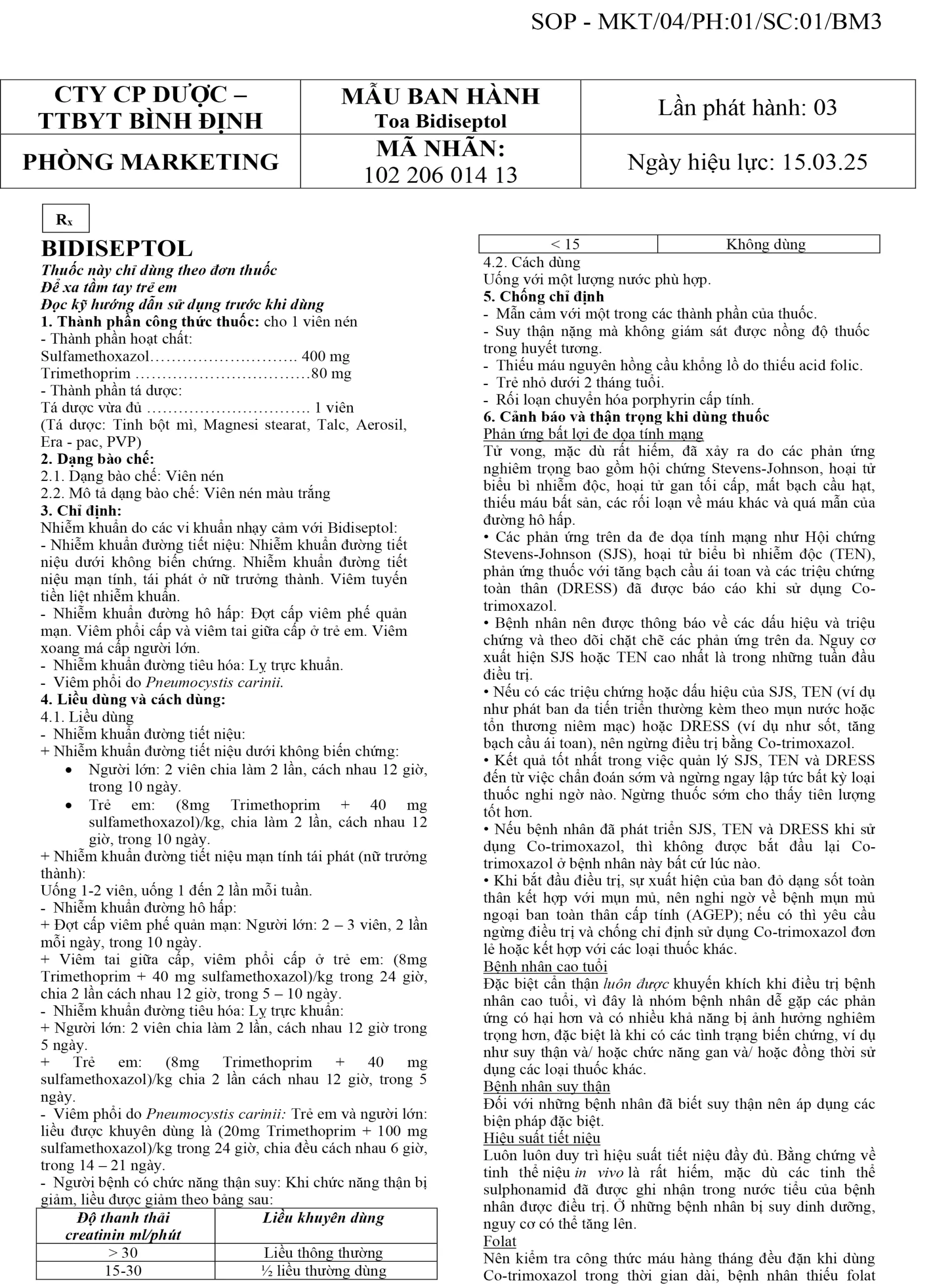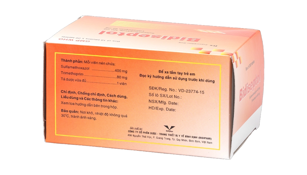 - Bidiseptol là sự kết hợp của Sulfamethoxazol và Trimethoprim theo tỉ lệ 5:1. Sulfamethoxazol là 1 sulfonamid, ức chế cạnh tranh tổng hợp acid folic của vi khuẩn.