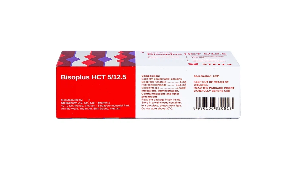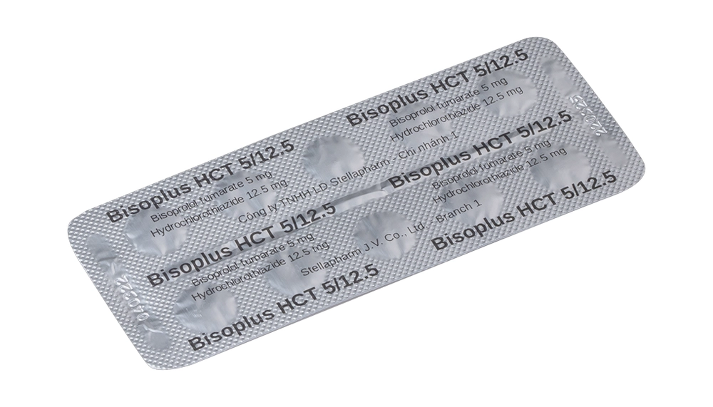 - Thuốc Bisoplus HCT 5 mg/12,5 mg là chế phẩm kết hợp của bisọprolol fumarat và hydroclorothiazid trong điêu trị tăng huyết áp. Hiệu quả điều trị tăng huyết áp của các thuốc được cộng lực, hydroclorothiazid làm tăng đáng kể tác động chống tăng huyết áp của bisoprolol fumarat.