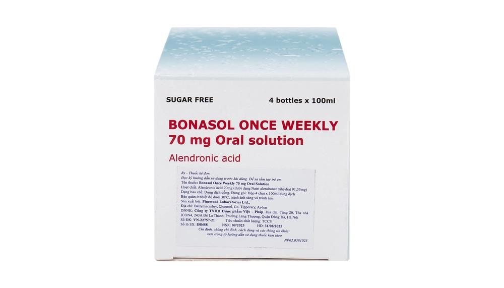 - Cần dặn bệnh nhân nếu quên không dùng một liều Bonasol Once Weekly 70 mg Oral Solution, thì phải uống một liều đơn (100 ml) vào buổi sáng ngay sau khi nhớ ra. Không được uống hai liều trong cùng một ngày và phải quay trở lại uống một đơn vị liều mỗi tuần vào đúng ngày đã chọn ban đầu.