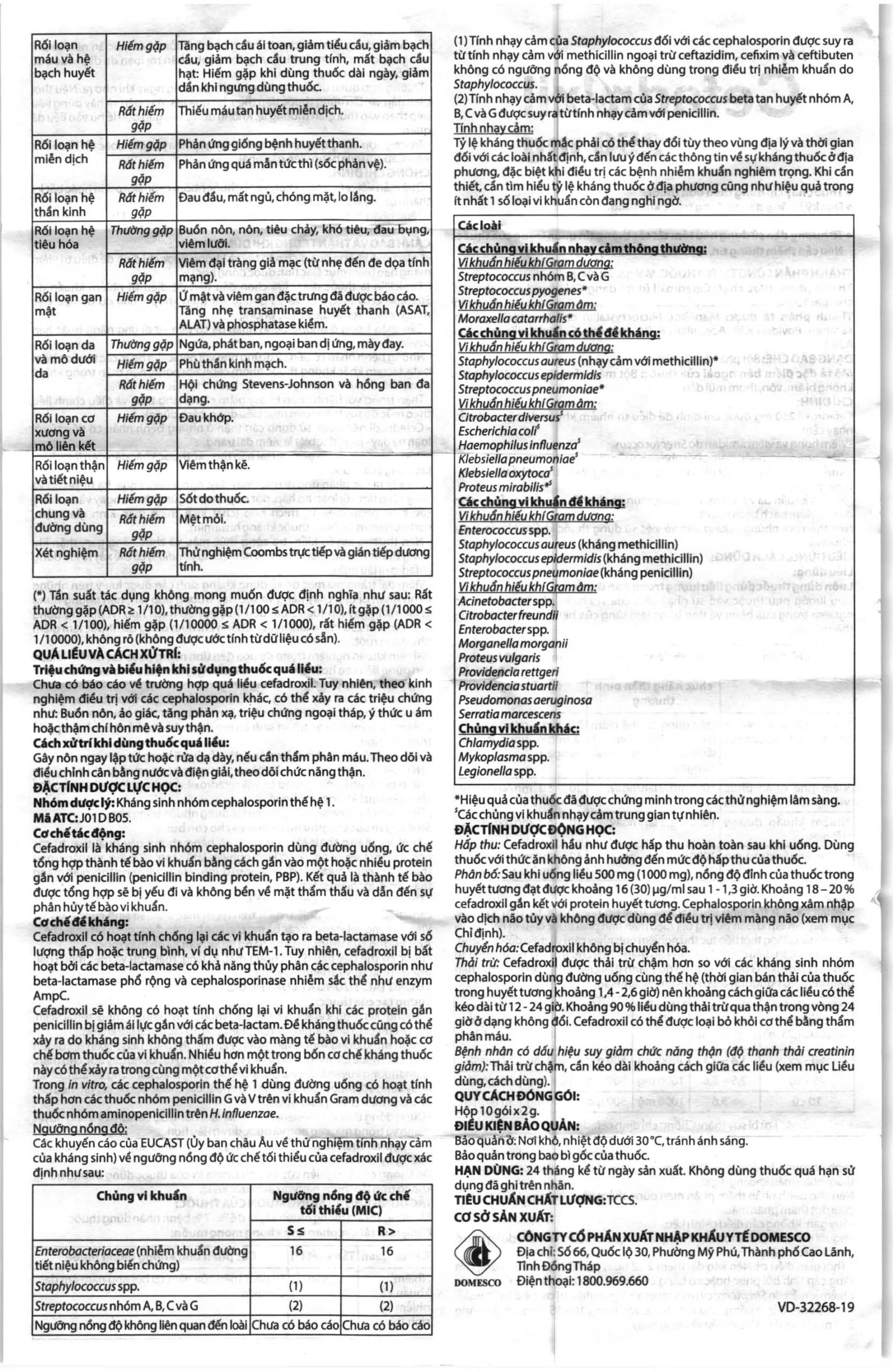 - Viêm đại tràng giả mạc do sử dụng kháng sinh cân được lưu ý trên những bệnh nhân bị tiêu chảy nặng và kéo dài. Trường hợp này, nên ngưng dùng cefadroxil ngay lập tức và bắt đầu 1 liệu pháp thích hợp (ví dụ như uống vancomycin 250mg, 4 lần/ngày). Chống chỉ định dùng các thuốc làm giảm nhu động ruột.