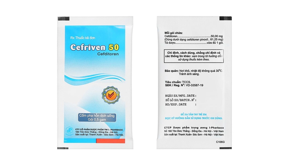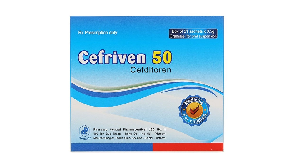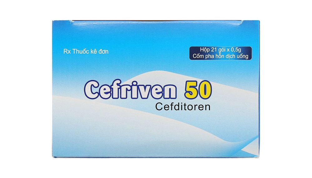 - Thuốc Cefriven 50 dùng đường uống, pha cốm thuốc trong gói với một lượng nước vừa đủ, khuấy cho thuốc phân tán đều trong nước (thành hỗn dịch đục) rồi uống ngay. Uống thuốc cùng với bữa ăn nhằm làm tăng hấp thu thuốc vào máu.