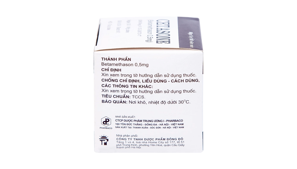 - Chuyển hóa: Thuốc được chuyển hoá chủ yếu ở gan và thải trừ chủ yếu qua thận với tỷ lệ chuyển hóa dưới 5%. Betamethason là một glucocorticoid. Tác dụng kéo dài với thời gian bán thải khoảng 36 – 54 giờ.