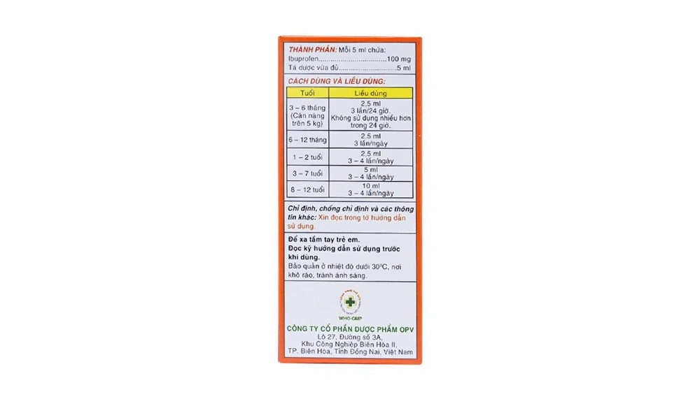 - Không nên dùng cho trẻ em cân nặng dưới 5 kg. Đối với đau và sốt – 20mg/kg/ngày chia làm nhiều lần.