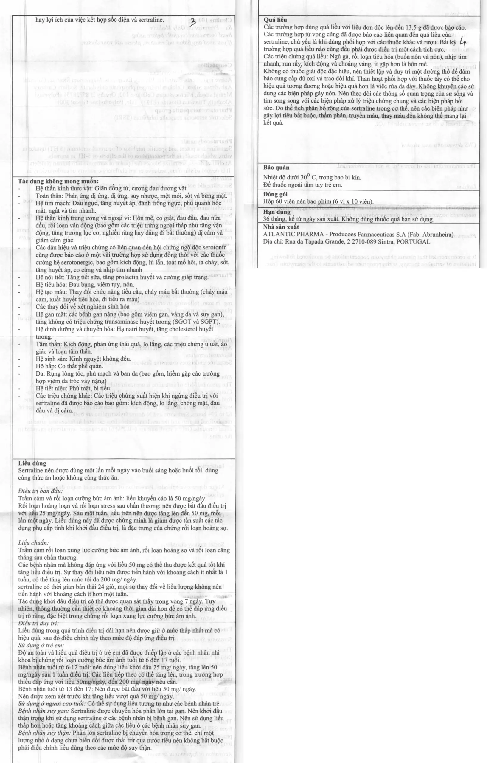 - Điều trị rối loạn cưỡng bức ám ảnh (OCD). Tiếp theo sự đáp ứng ban đầu sertraline duy trì hiệu quả kéo dài, an toàn và độ dung nạp tốt trong quá trình điều trị kéo dài đến 2 năm rối loạn cưỡng bức ám ảnh (OCD).