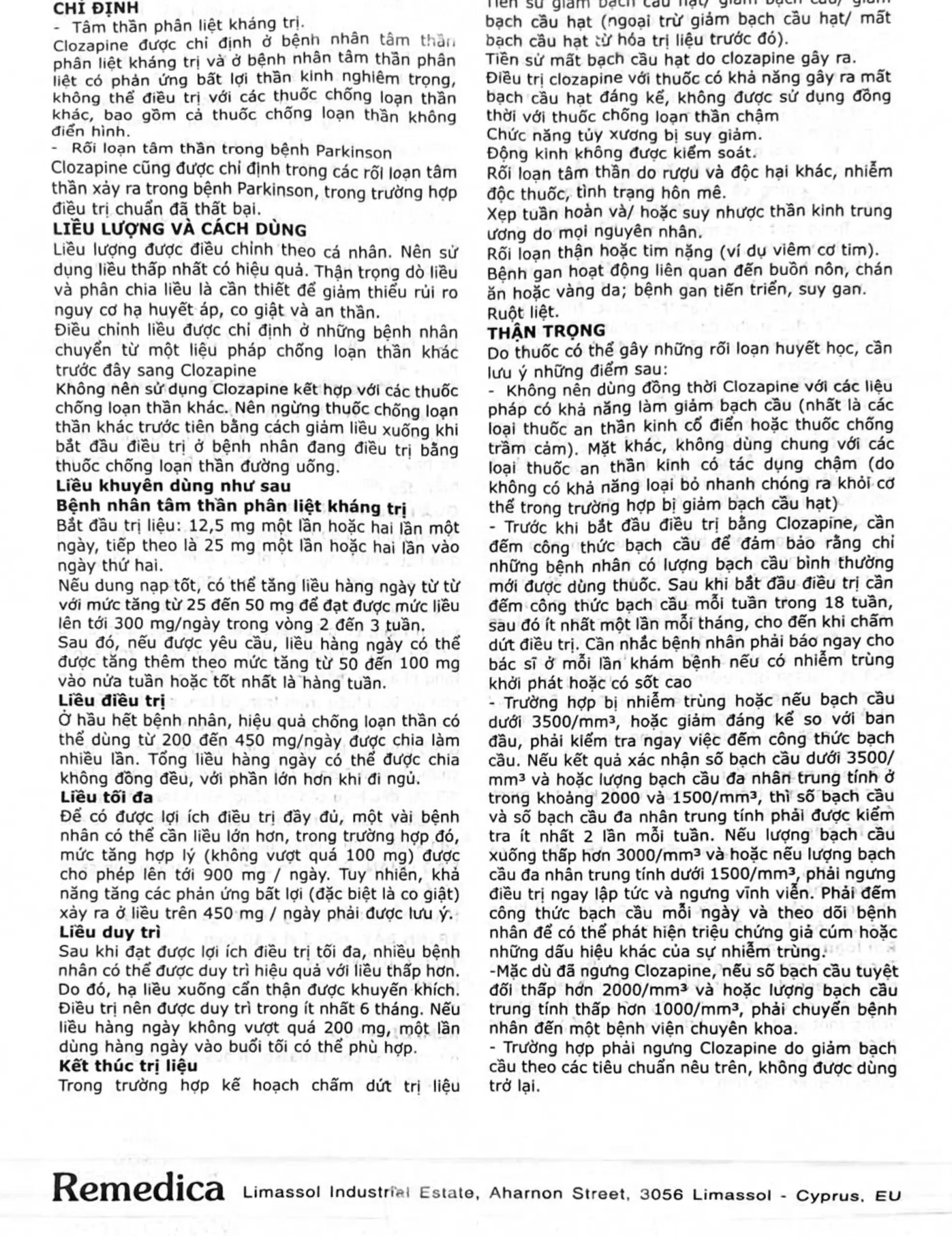- Trường hợp phải ngưng Clozapine do giảm bạch cầu theo các tiêu chuẩn nêu trên, không được dùng trở lại.