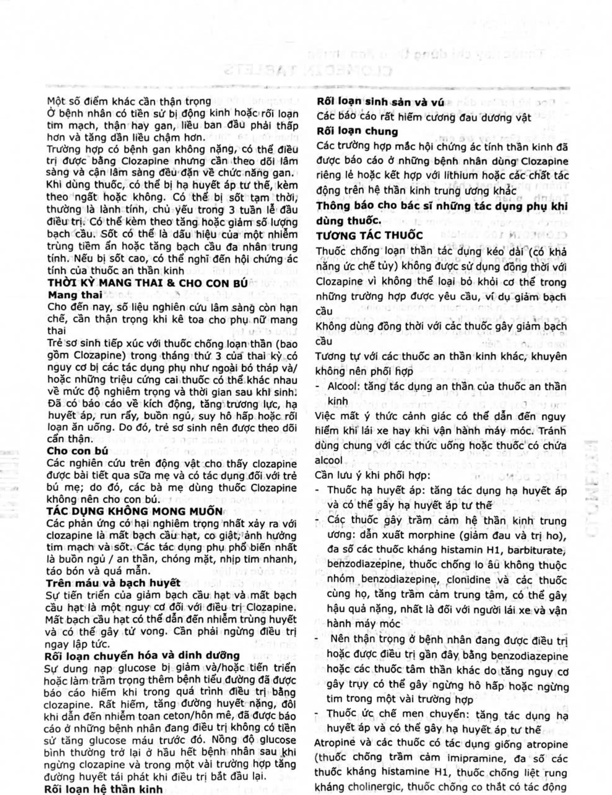 - Điều trị clozapine với thuốc có khả năng gây ra mất bạch cầu hạt đáng kể, không được sử dụng đồng thời với thuốc chống loạn thần chậm.