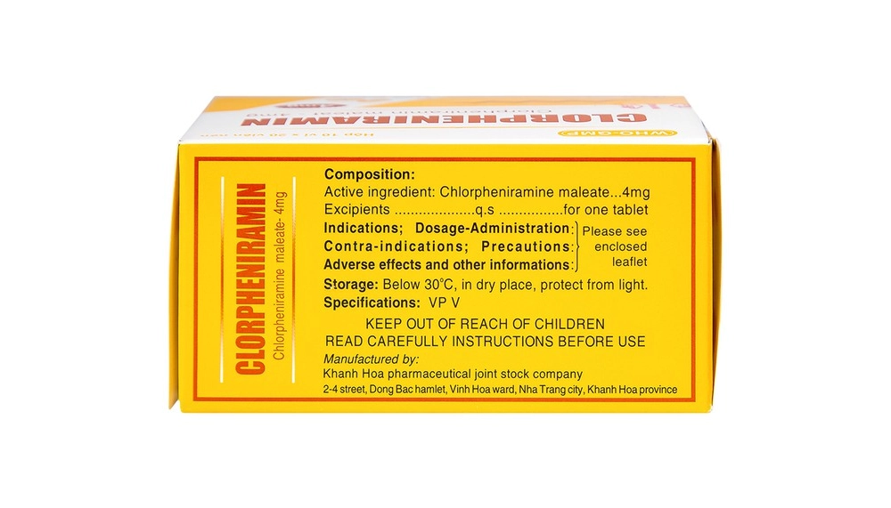 - Liều gây chết của clorpheniramin khoảng 25 – 50 mg/kg thể trọng.