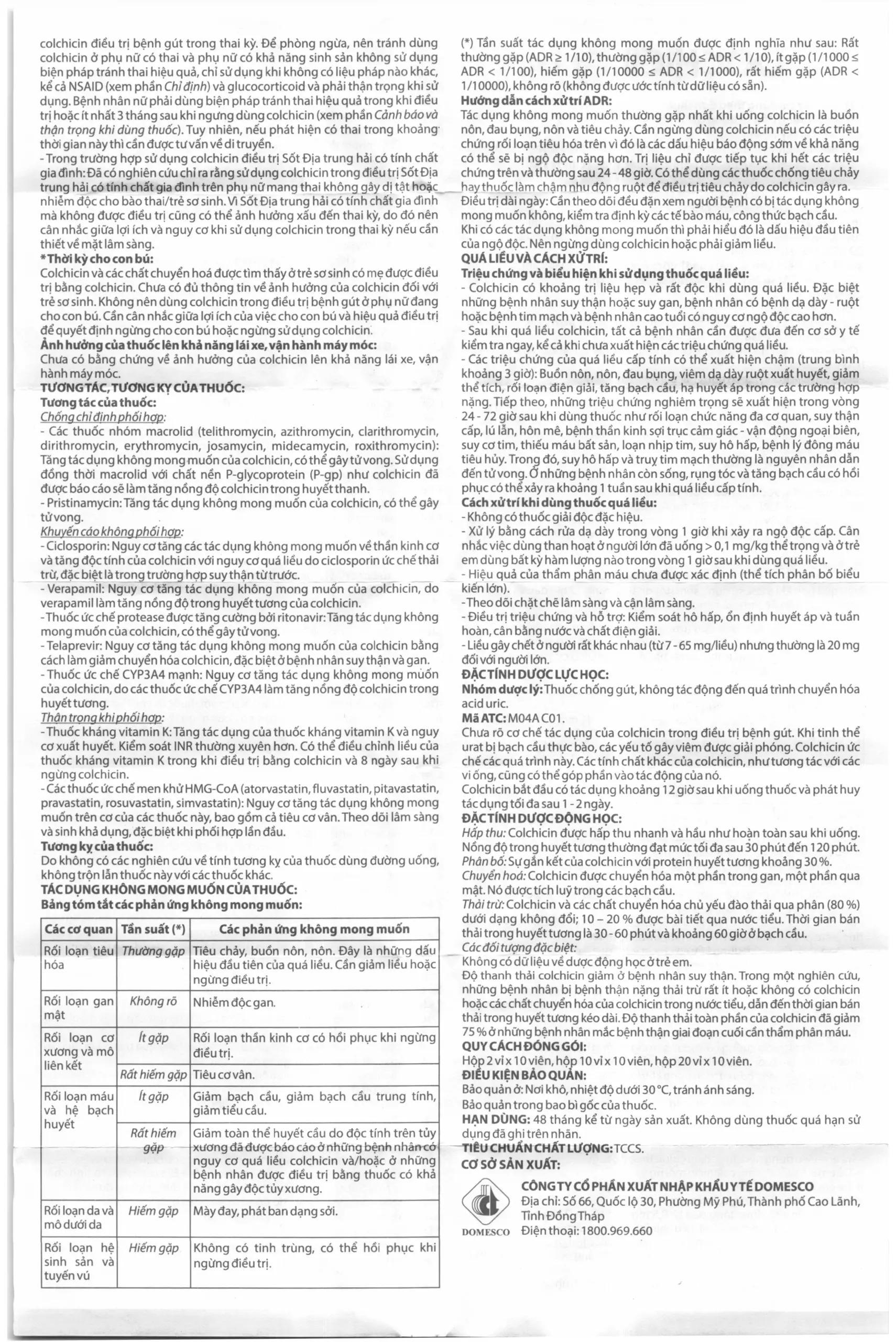 - Liều colchicin tối đa cho mỗi lần là 1mg.