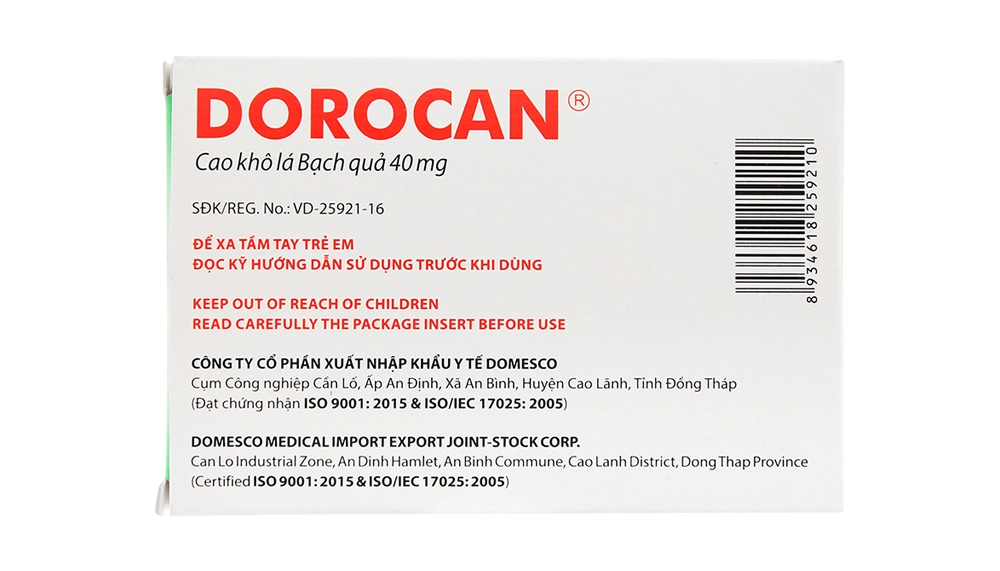 Chỉ định chính của Dorocan 40mg:
