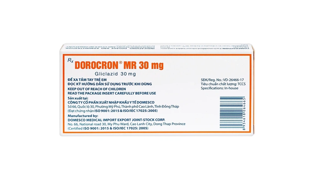 - Giống với các sulfonylure khác, điều trị với Dorocron MR 30mg có thể gây hạ đường huyết, nếu ăn không điều độ và đặc biệt, nếu bệnh nhân bỏ bữa ăn.