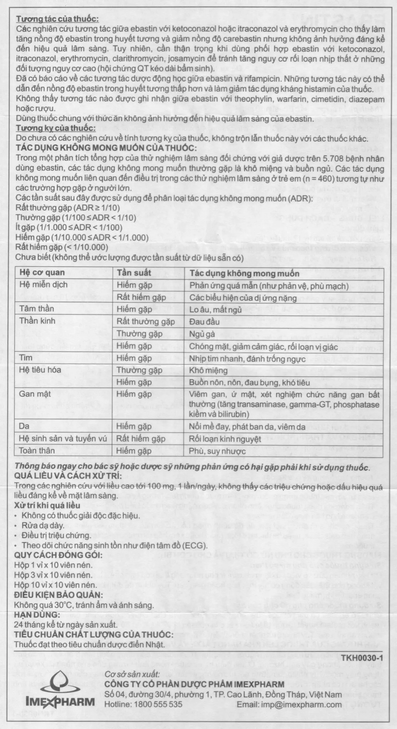 Ebastin 10mg Imexpharm 30 viên – Thuốc điều trị viêm mũi dị ứng