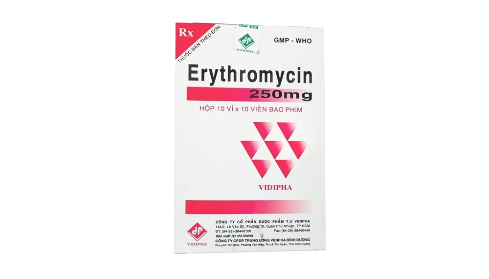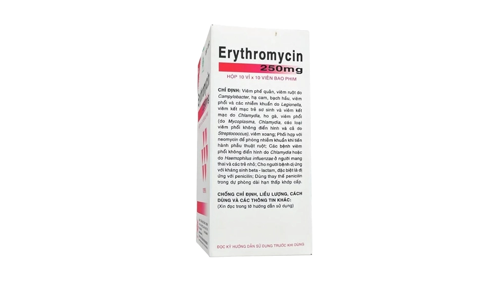 Chỉ định chính của Erythromycin 250mg: