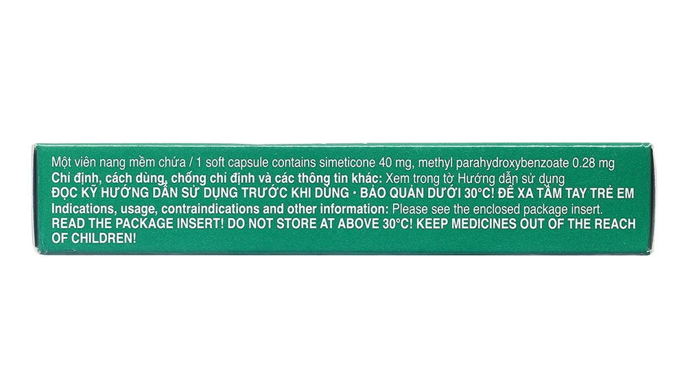 Thanh thiếu niên và người lớn | 2 viên nang (tương đương 80 mg simeticone) | 3 – 4 lần/ngày. |