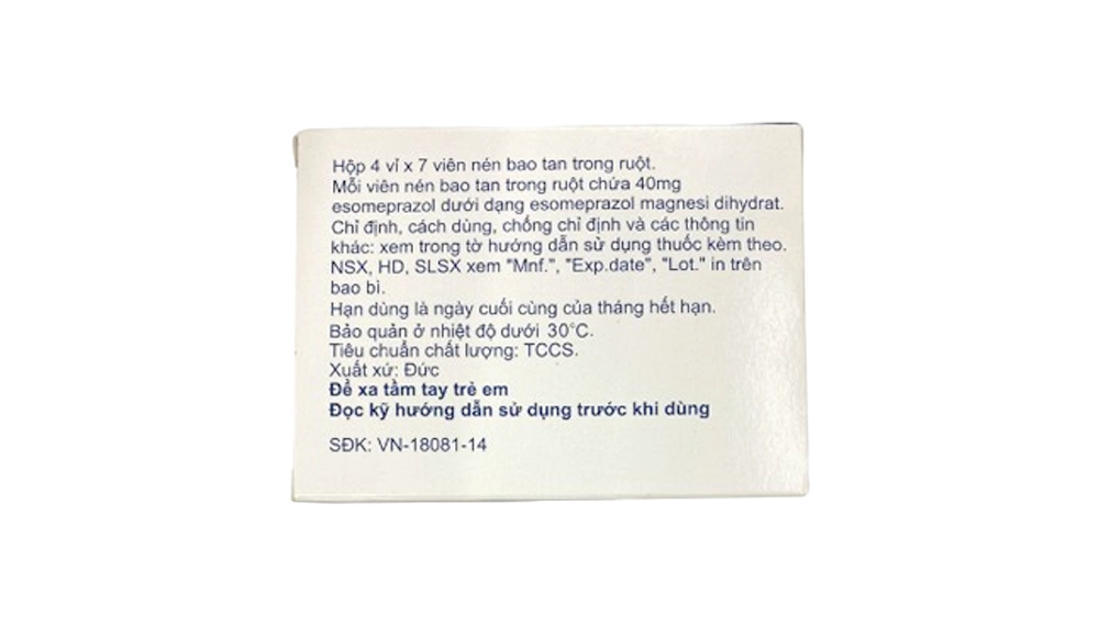 - Liều khởi đầu được khuyến cáo là esomeprazole 40 mg/lần, 2 lần/ ngày. Sau đó, điều chỉnh liều theo chỉ định.