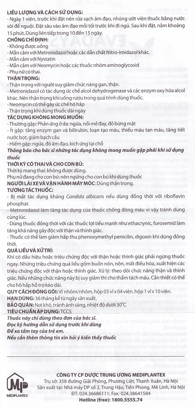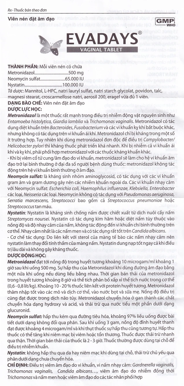 - Viên nén Evadays dùng đặt âm đạo.