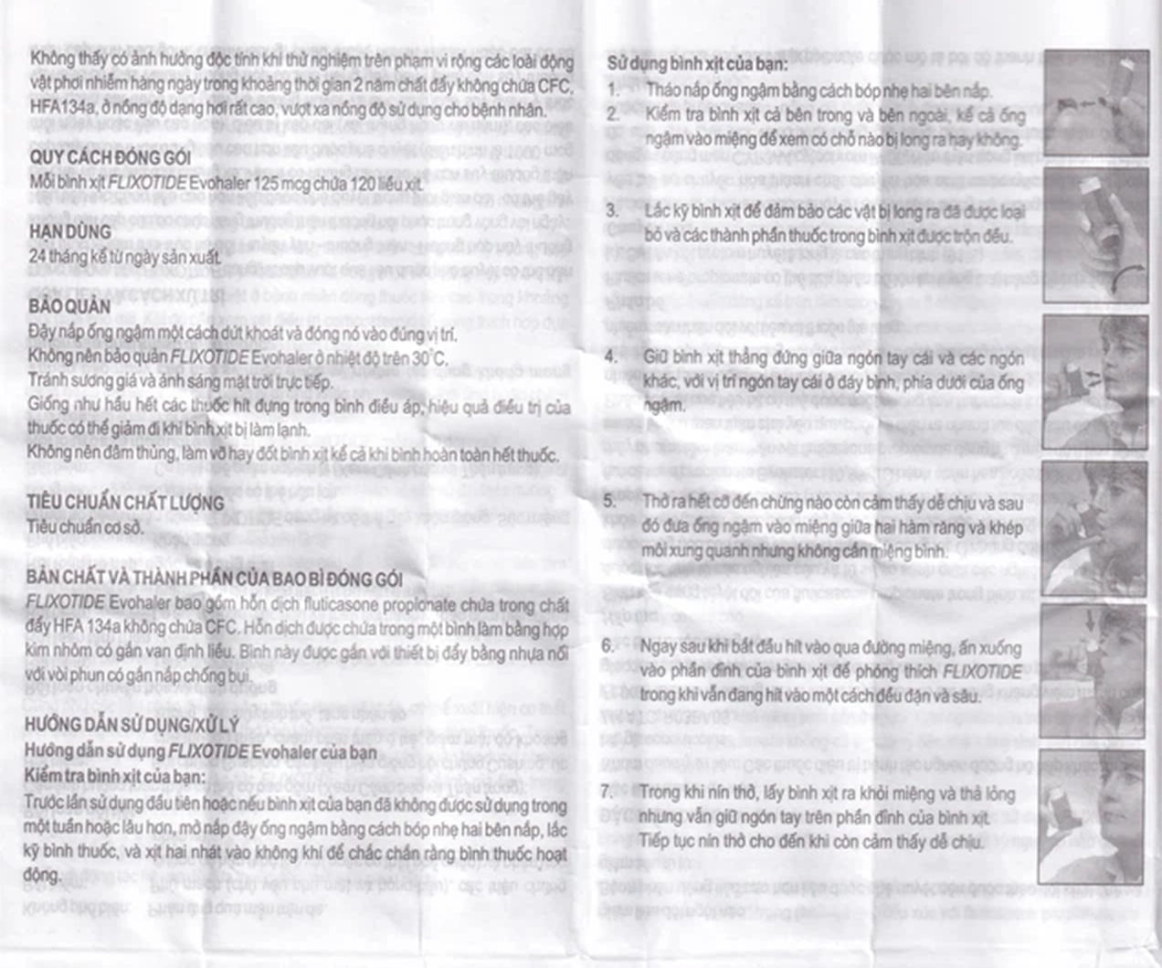 - Nếu bệnh nhân cảm thấy khó khăn khi hít thuốc từ bình xịt định liều điều áp thì nên sử dụng Flixotide 125mcg dạng hít qua buồng đệm.