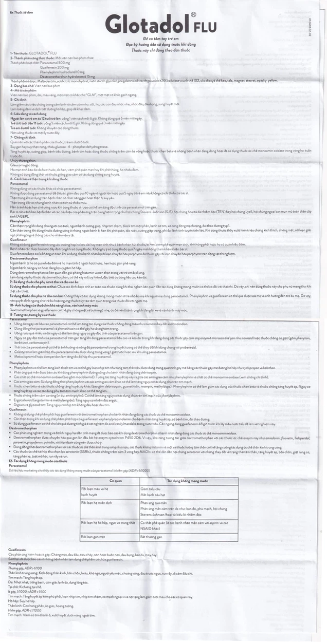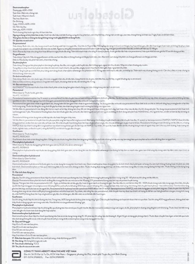 GLOTADOL FLU là một thuốc chứa nhiều thành phần có tác dụng làm giảm nhanh chóng các triệu chứng trong cảm lạnh và cảm cúm