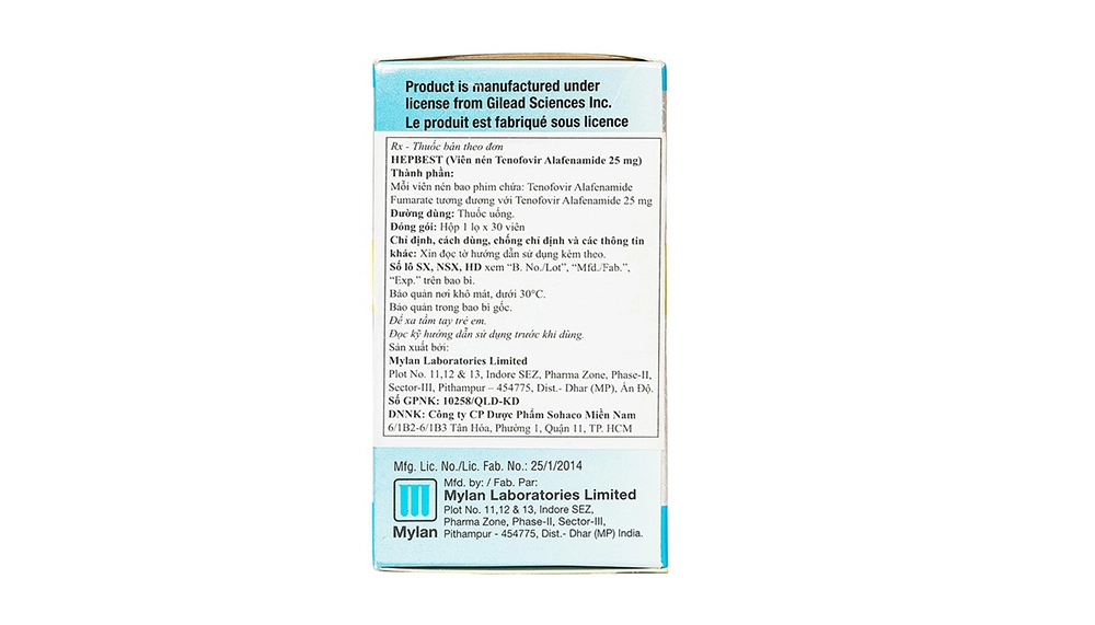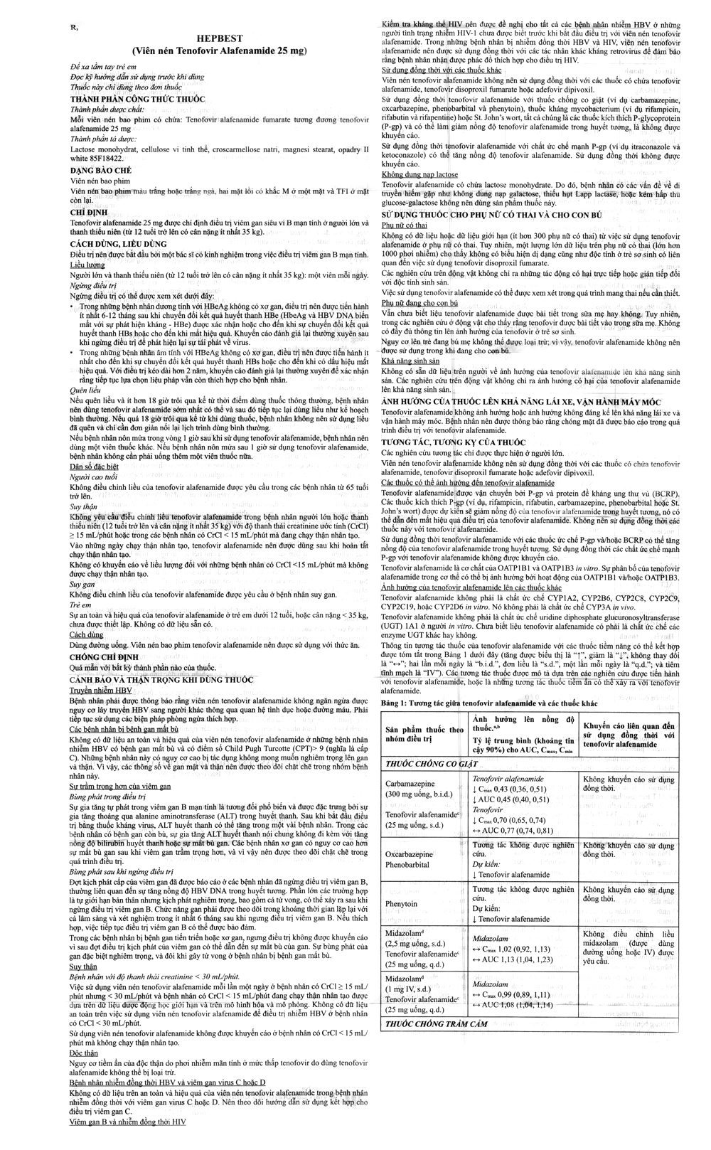 - Không dùng Hepbest 25 mg chung với các thuốc có chứa tenofovir alafenamide, tenofovir disoproxil fumarate, adenovir dipivoxil.