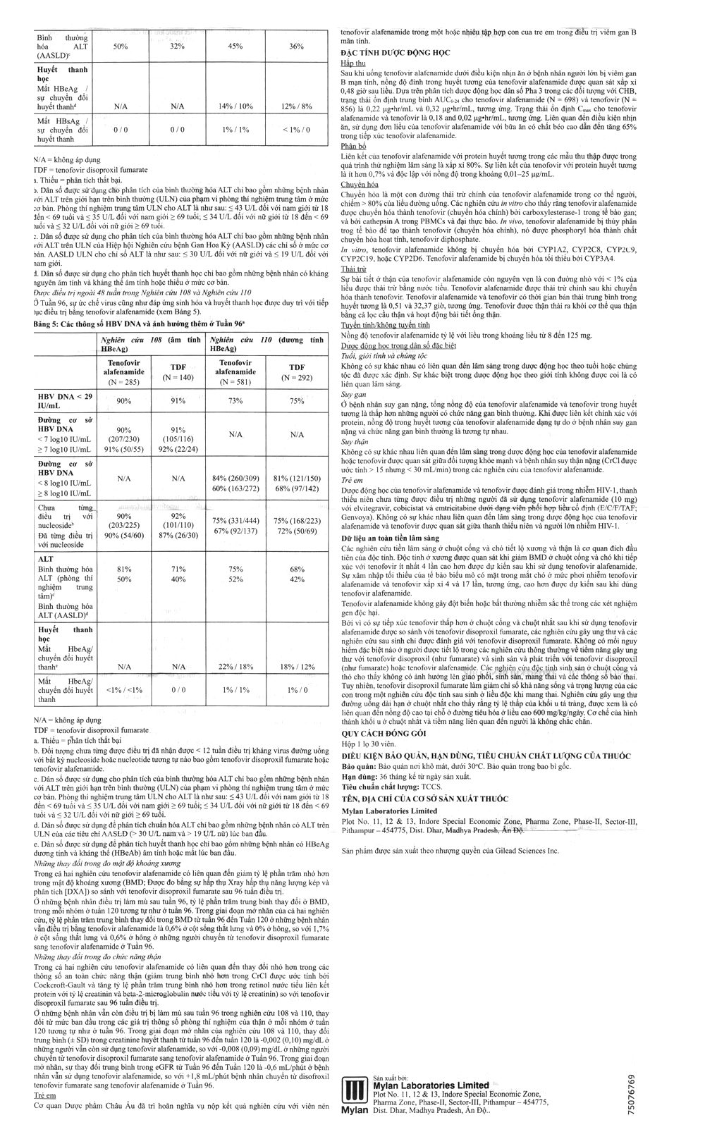 - Các chủng HBV phân lập kháng với một số thuốc kháng virus ức chế men sao chép ngược nucleoside hoặc nucleotide khác được sử dụng để điều trị nhiễm HBV (ví dụ, adefovir, entecavir, lamivudine) cũng có thể làm giảm tính nhạy cảm với tenofovir.
