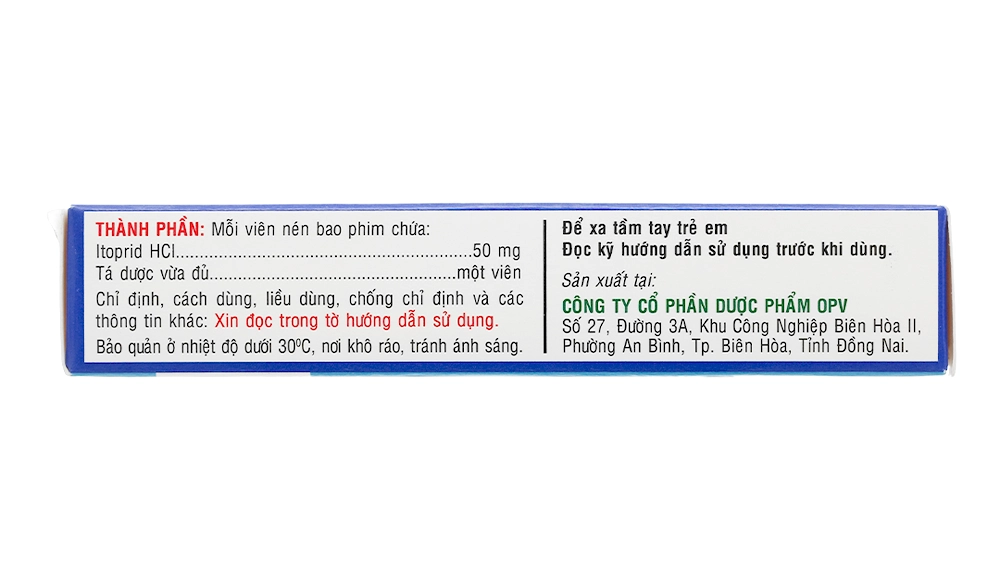- Liều uống thông thường cho người lớn là 150 mg itoprid hydrochlorid (3 viên) mỗi ngày, chia 3 lần, mỗi lần 1 viên. Liều này có thể giảm bớt tùy thuộc vào tuổi tác và bệnh trạng của từng bệnh nhân.