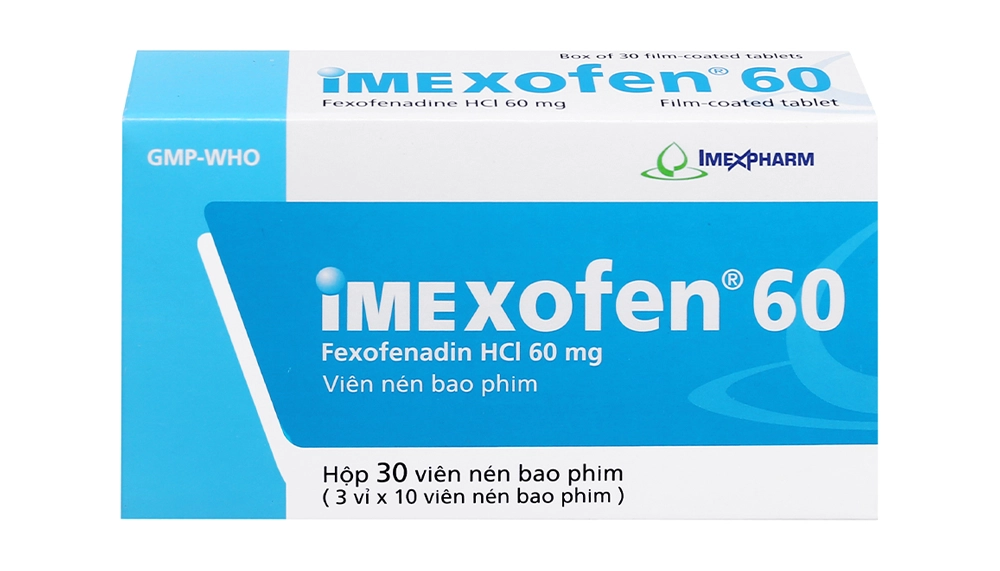 - Imexofen 60 điều trị triệu chứng trong viêm mũi dị ứng theo mùa, mày đay mạn tính vô căn ở người lớn và trẻ em trên 6 tuổi.