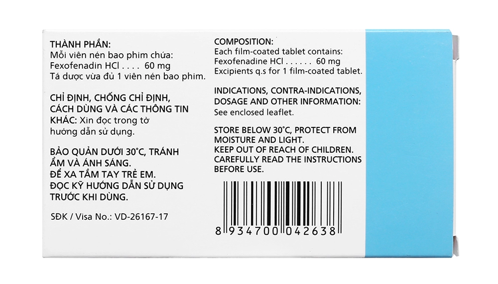- Fexofenadin là thuốc kháng histamin thế hệ 2, có tác dụng đối kháng đặc hiệu và chọn lọc trên thụ thể H1 ngoại vi.