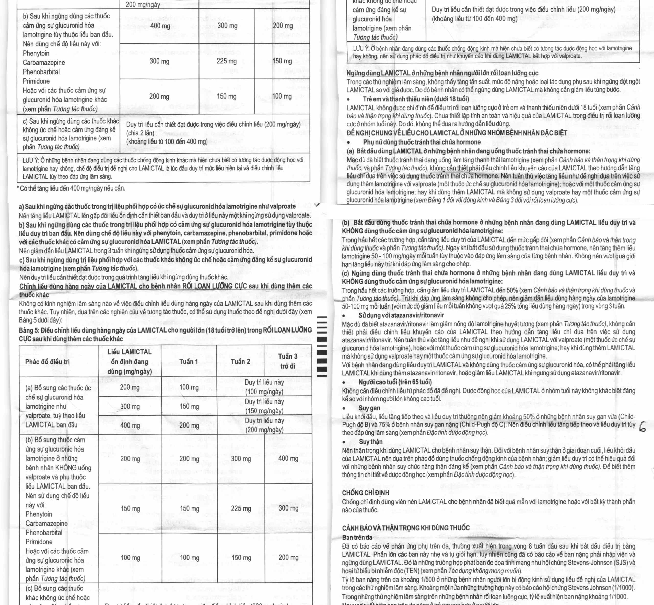 - Do nguy cơ phát ban, không nên vượt quá liều khởi đầu và liều tăng dần sau đó (xem Cảnh báo và thận trọng khi dùng thuốc).