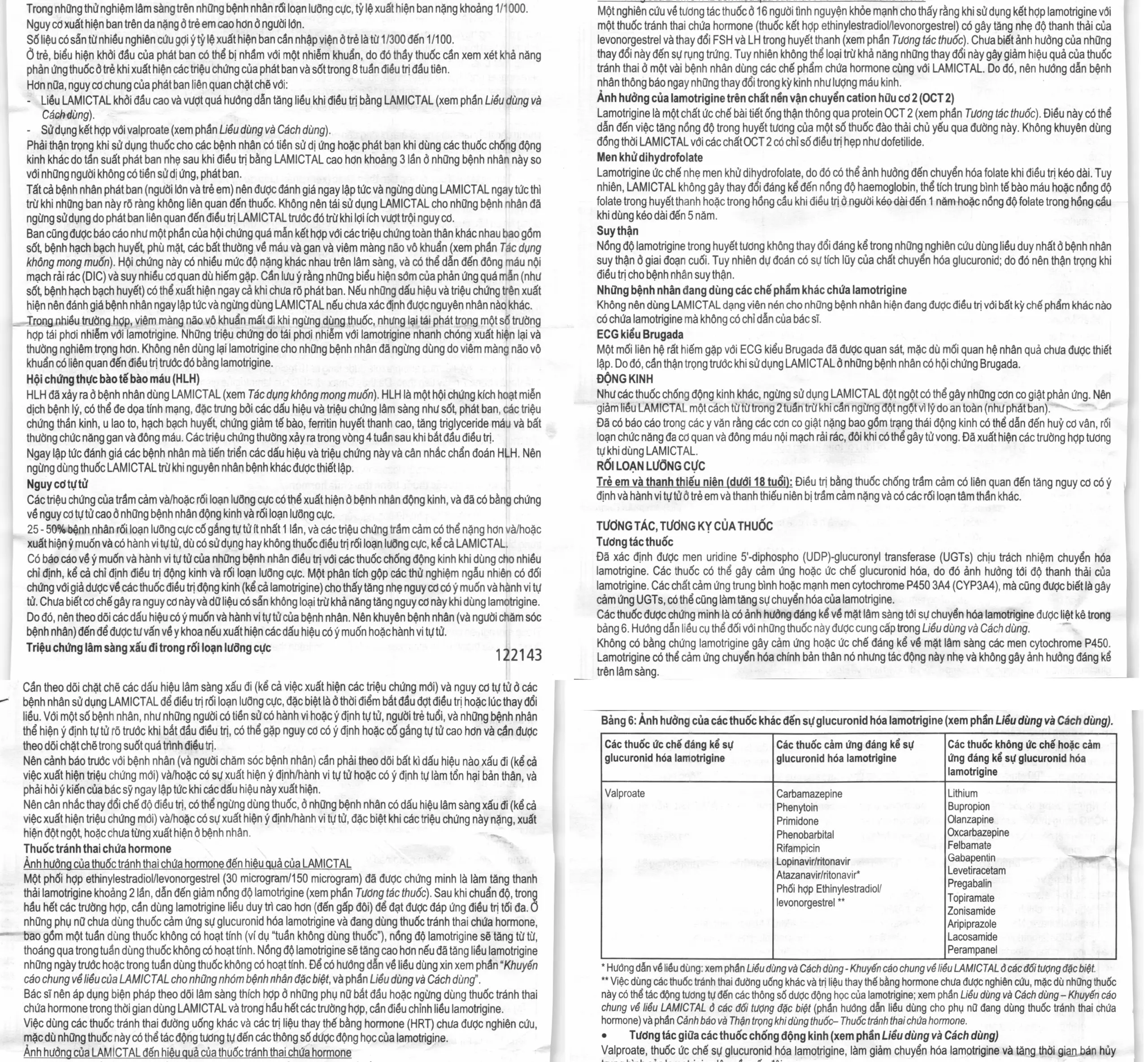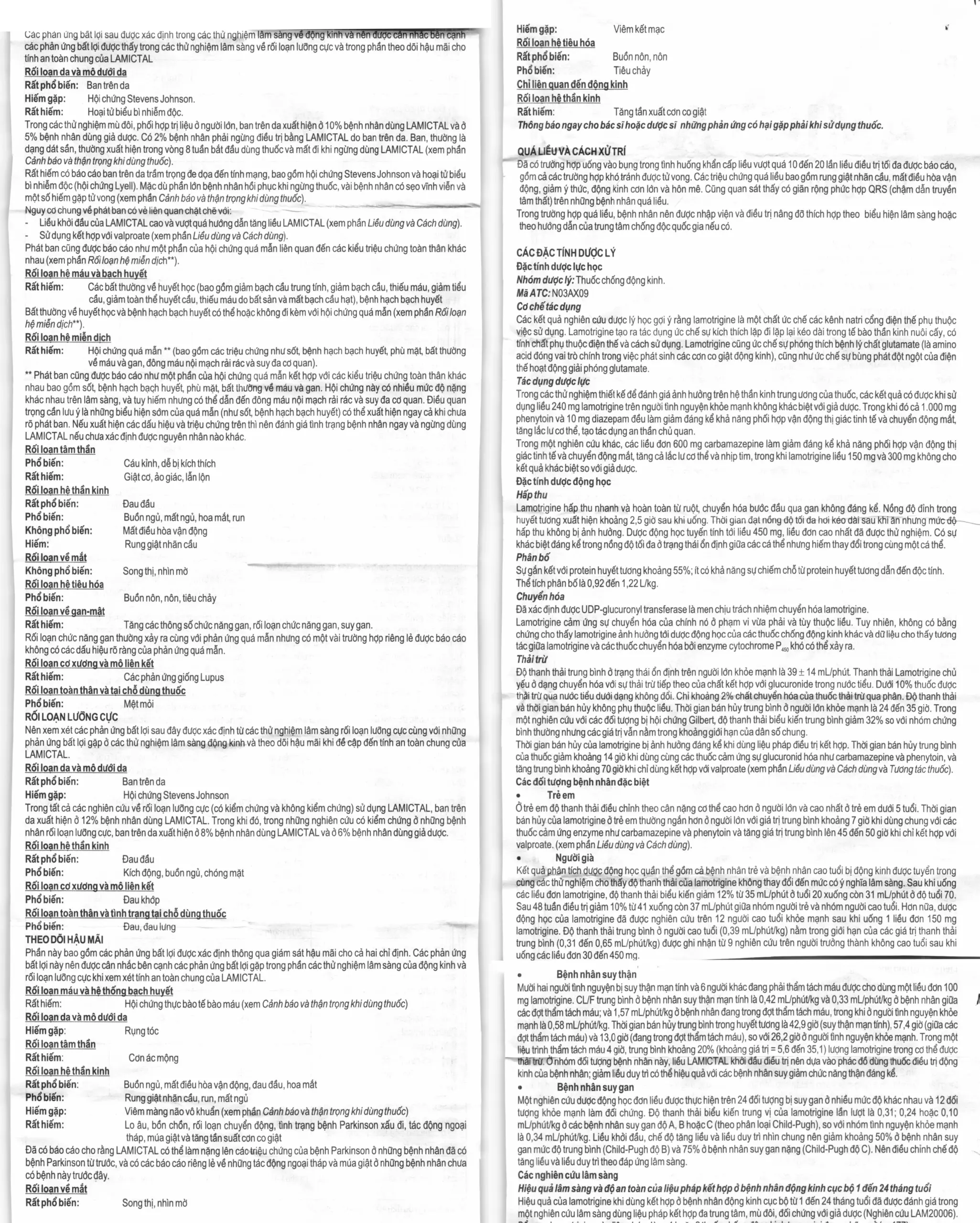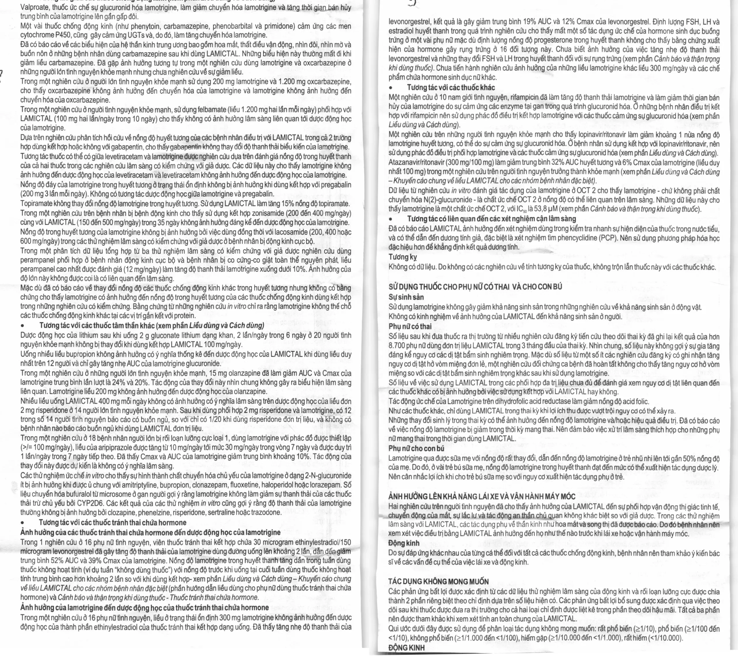 - Số liệu về việc sử dụng LAMICTAL trong các phối hợp đa trị liệu chưa đủ để đánh giá xem nguy cơ dị tật liên quan đến các thuốc khác có bị ảnh hưởng bởi việc sử dụng kết hợp với LAMICTAL hay không.