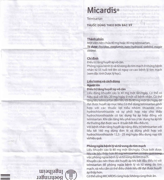 - Hạ huyết áp triệu chứng đặc biệt sau liều dùng đầu tiên có thể xuất hiện ở những bệnh nhân bị giảm thể tích nội mạch và/hoặc giảm natri do điều trị lợi tiểu mạnh, chế độ ăn hạn chế muối, tiêu chảy hoặc nôn. Những tình trạng như vậy, đặc biệt trong giảm thể tích nội mạch và/hoặc giảm natri, cần được điều chỉnh trước khi sử dụng MICARDIS.