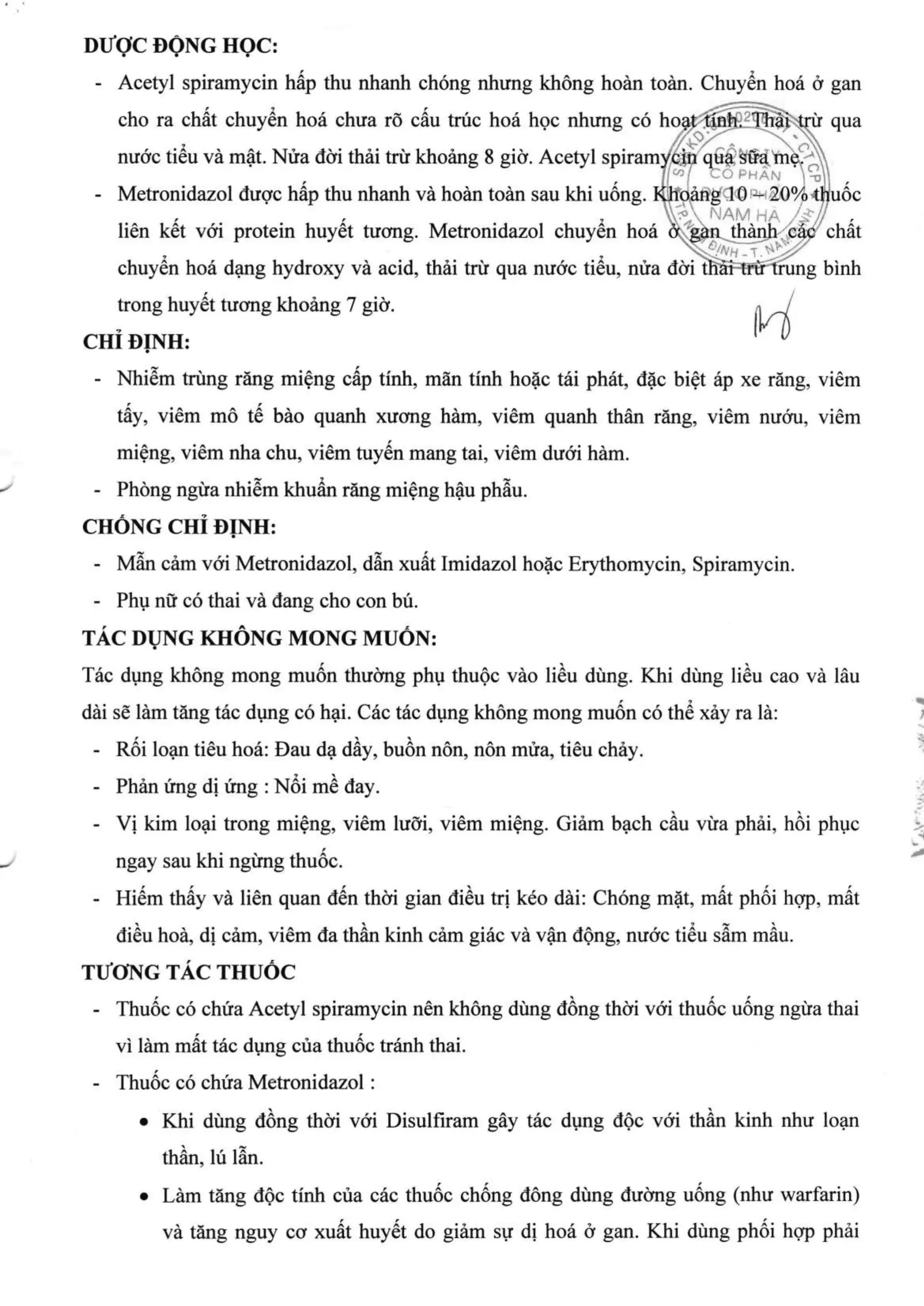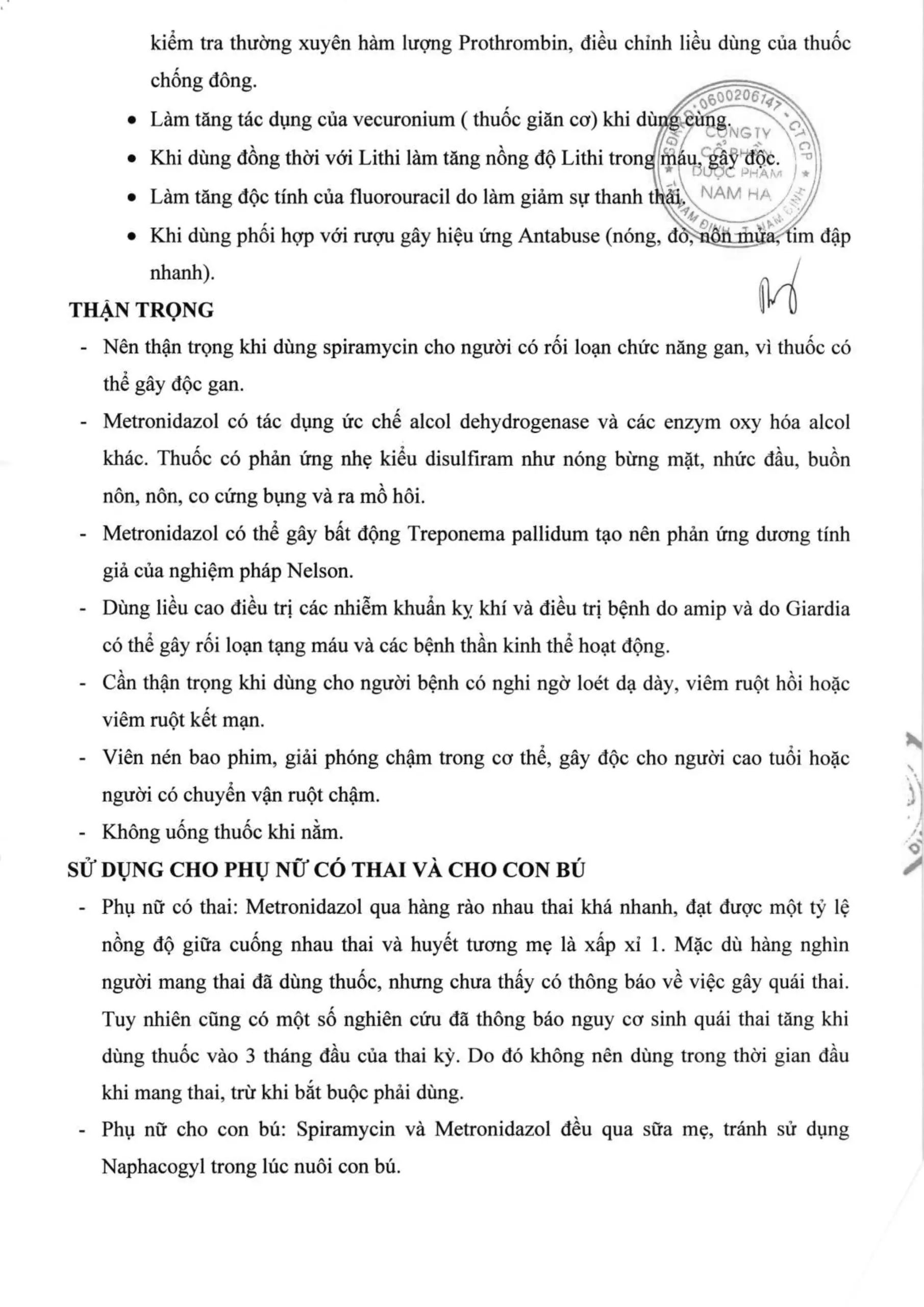 - Thuốc có chứa Acetyl spiramycin nên không dùng đồng thời với thuốc uống ngừa thai vì làm mất tác dụng của thuốc tránh thai.