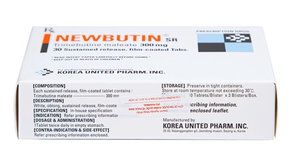 - Trimebutineở dạng liên kết với protein tối thiểu 5% trong huyết tương.