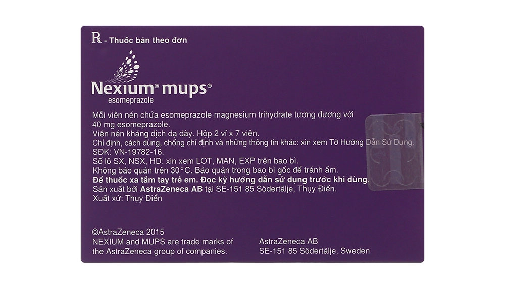 - Chưa có đủ dữ liệu lâm sàng về việc dùng NEXIUM MUPS trên phụ nữ có thai. Khi dùng hỗn hợp đồng phân racemic của omeprazole, dữ liệu trên số lượng lớn phụ nữ có thai có dùng thuốc từ các nghiên cứu dịch tễ chứng tỏ thuốc không gây dị tật hoặc độc tính trên bào thai.