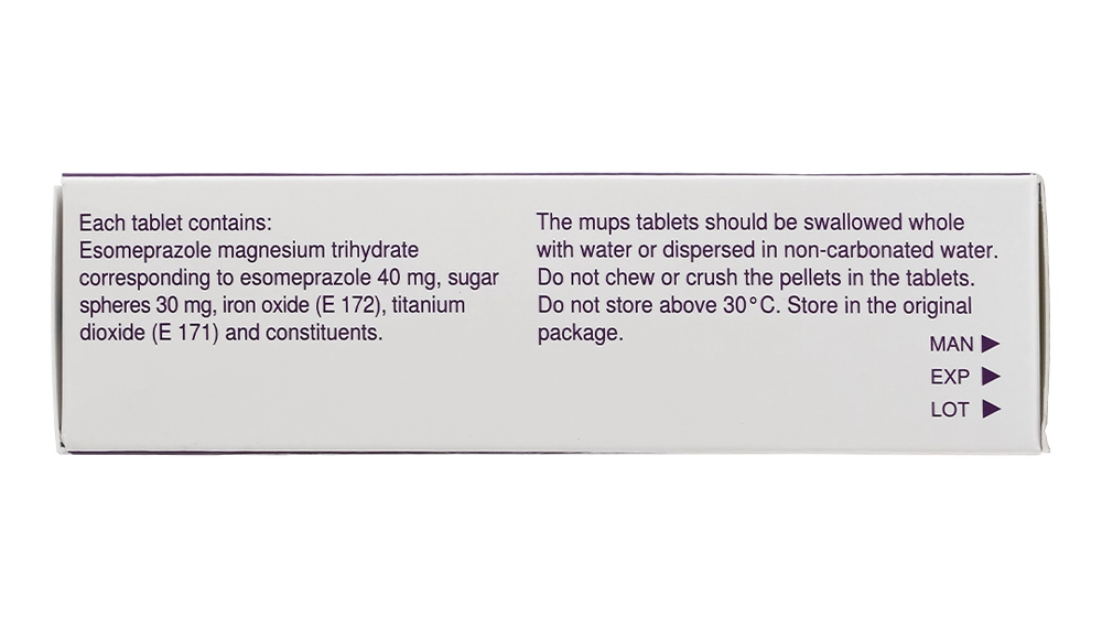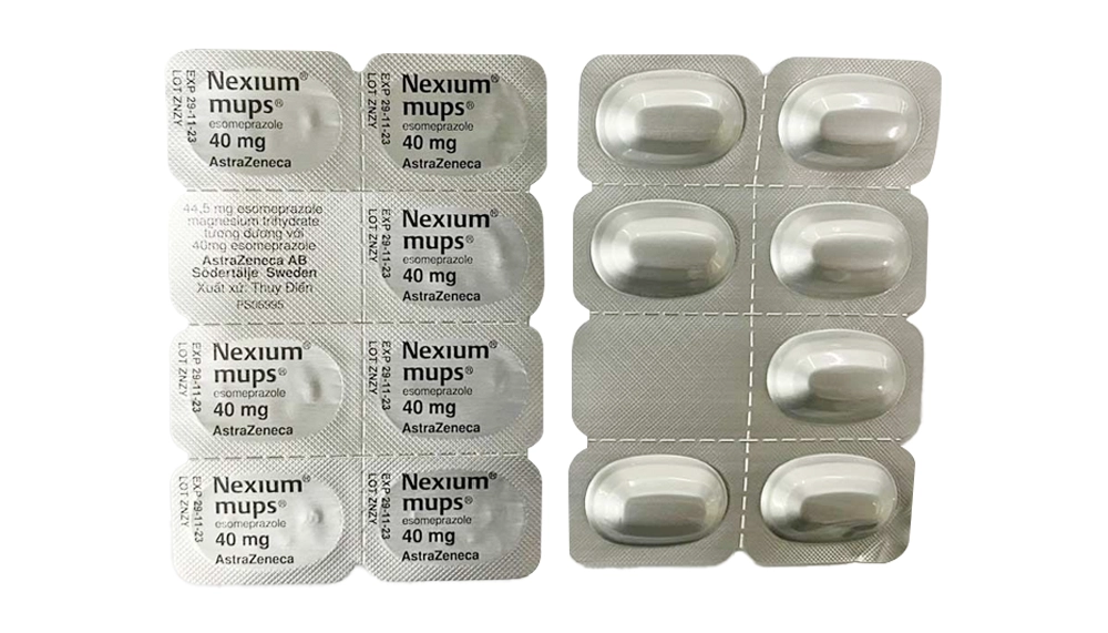 - Phòng ngừa tái phát loét dạ dày – tá tràng ở bệnh nhân loét có nhiễm Helicobacter pylori: NEXIUM MUPS 20mg, amoxicillin 1g và clarithromycin 500mg, tất cả được dùng 2 lần/ngày trong 7 ngày.