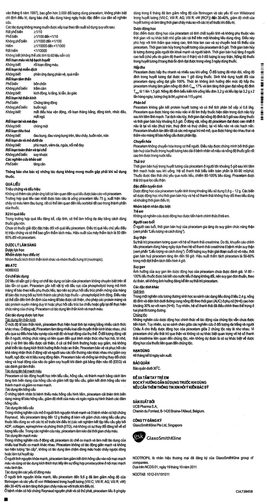 - Không có thêm các phản ứng bất lợi liên quan đến quá liều được báo cáo với Piracetam.