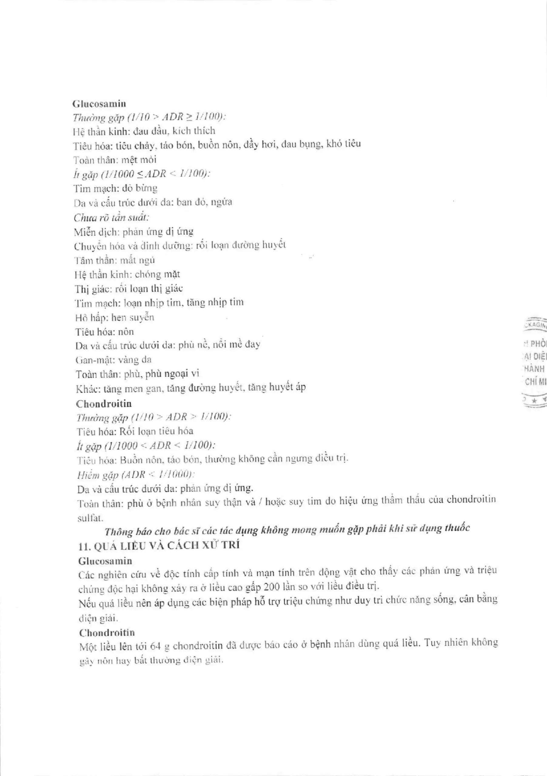 - Một liều lên tới 64g chondroitin đã được báo cáo ở bệnh nhân dùng quá liều. Tuy nhiên không gây nôn hay bất thường điện giải.