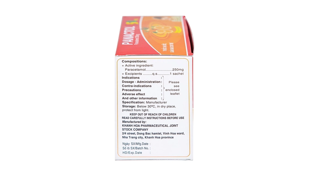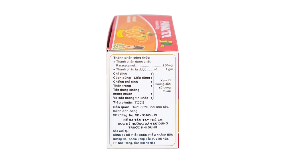 - Trẻ từ 2 – 7 tuổi (13 kg – 20 kg): 250 mg (1 gói) mỗi 6 giờ. Tối đa 1000 mg/ngày (4 gói).