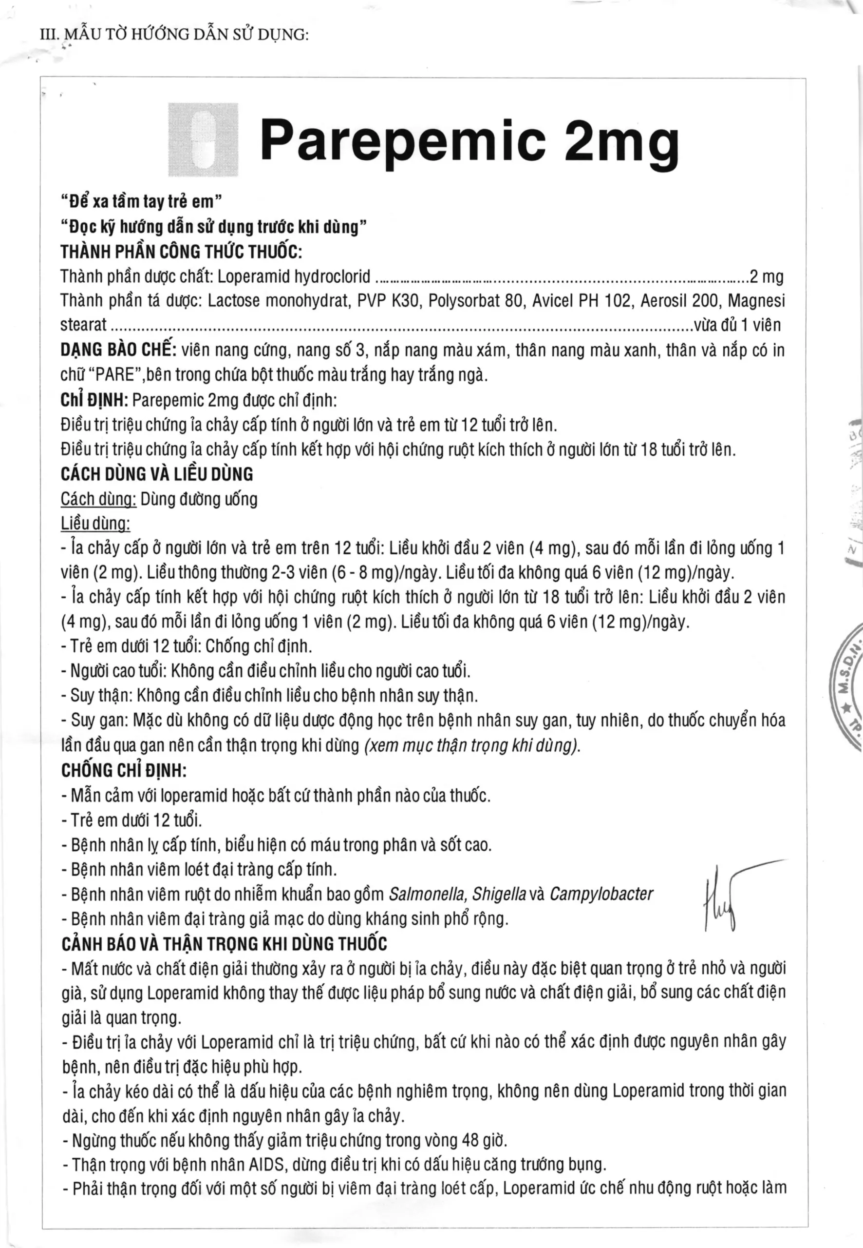 - Mẫn cảm với loperamid hoặc bất cứ thành phần nào của thuốc.
