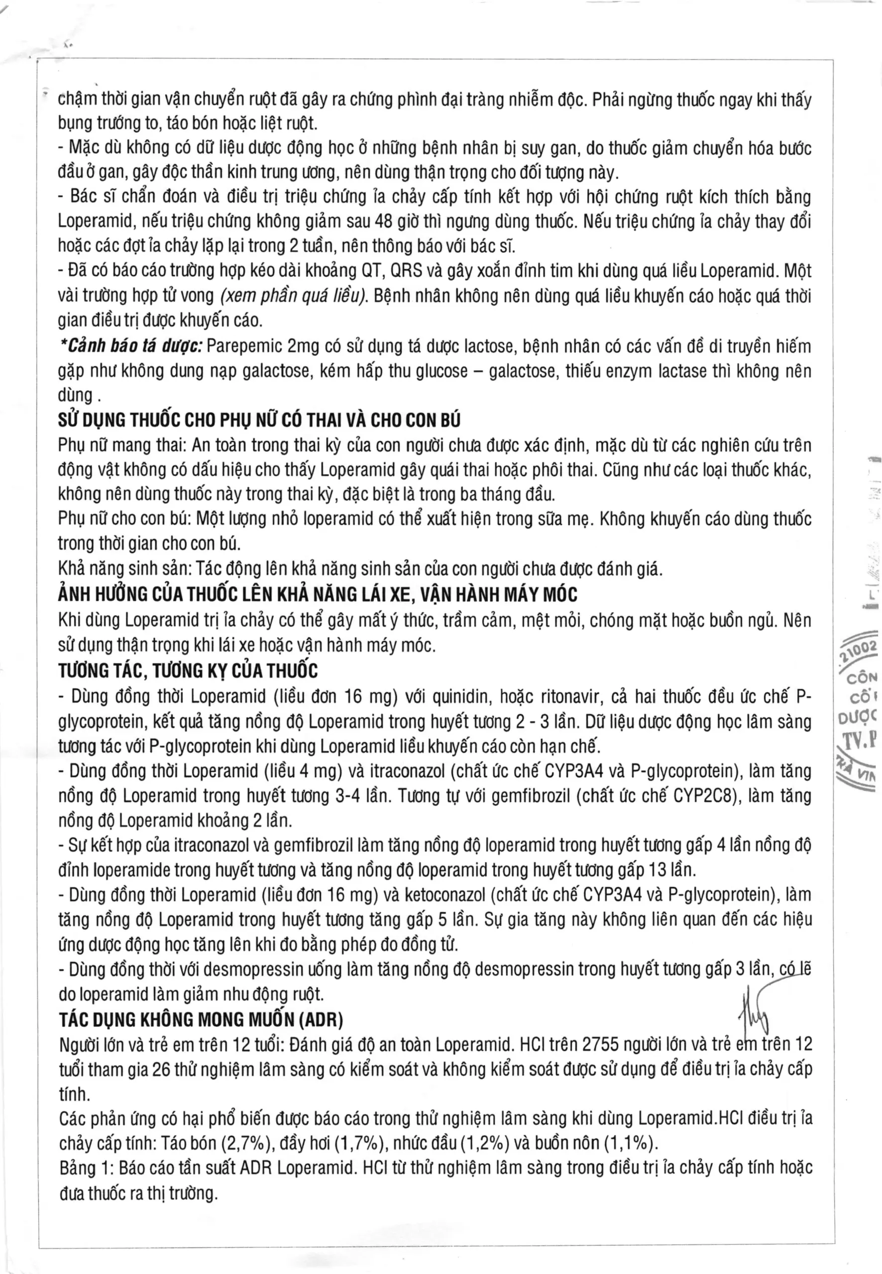 - Bảng 1: Báo cáo tần suất ADR Loperamid. HCl từ thử nghiệm lâm sàng trong điều trị ỉa chảy cấp tính hoặc đưa thuốc ra thị trường.