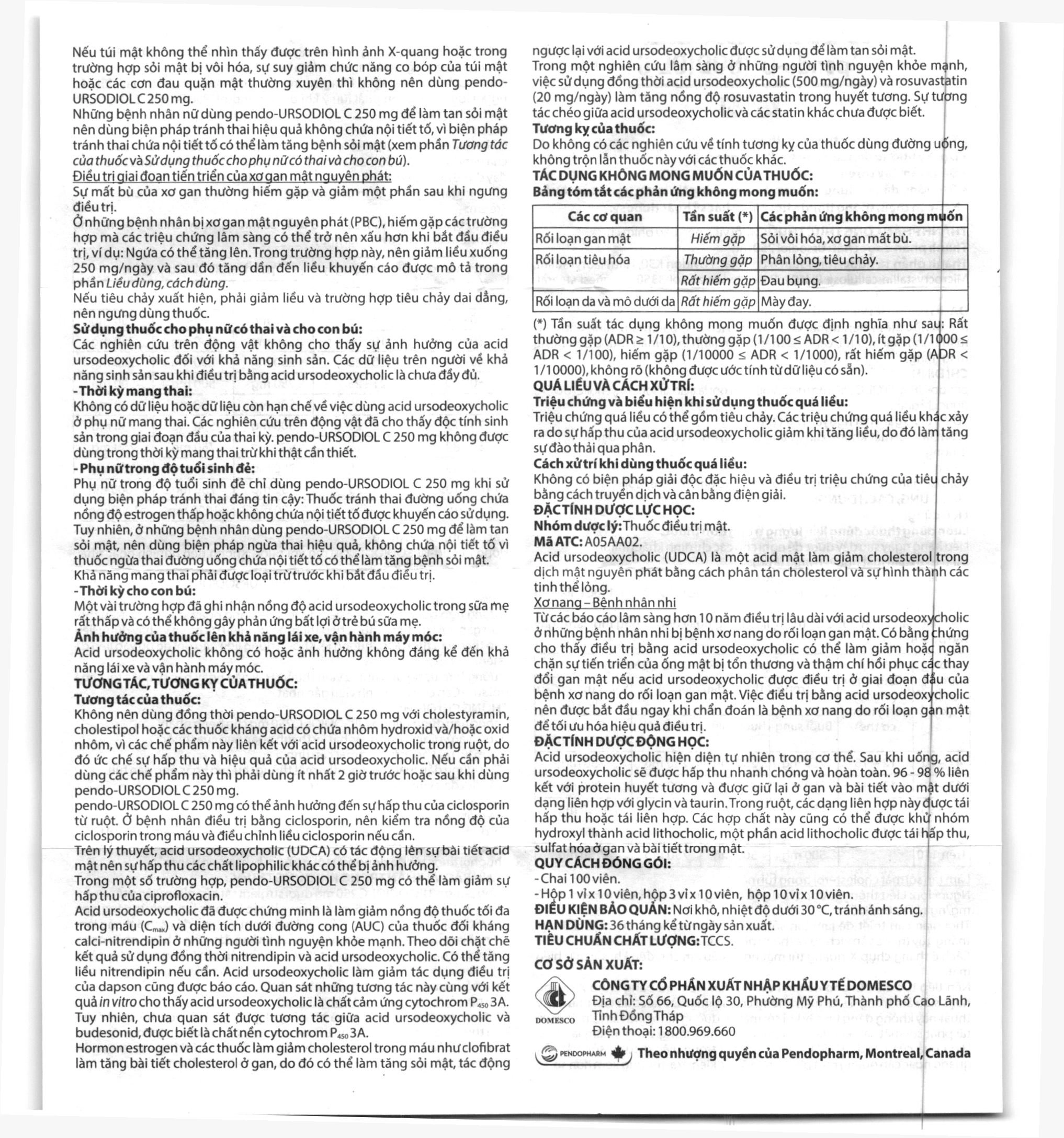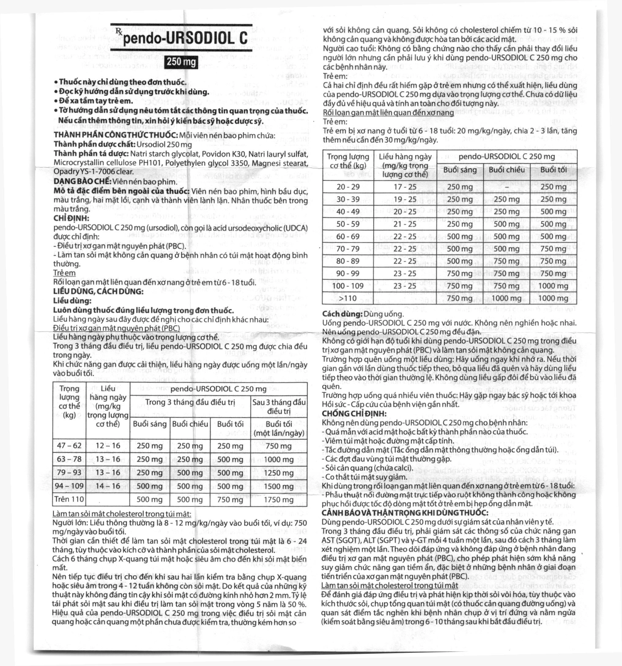 - Không có giới hạn độ tuổi khi dùng Pendo-Ursodiol C 250 mg trong điều trị xơ gan mật nguyên phát (PBC) và làm tan sỏi mật không cản quang.