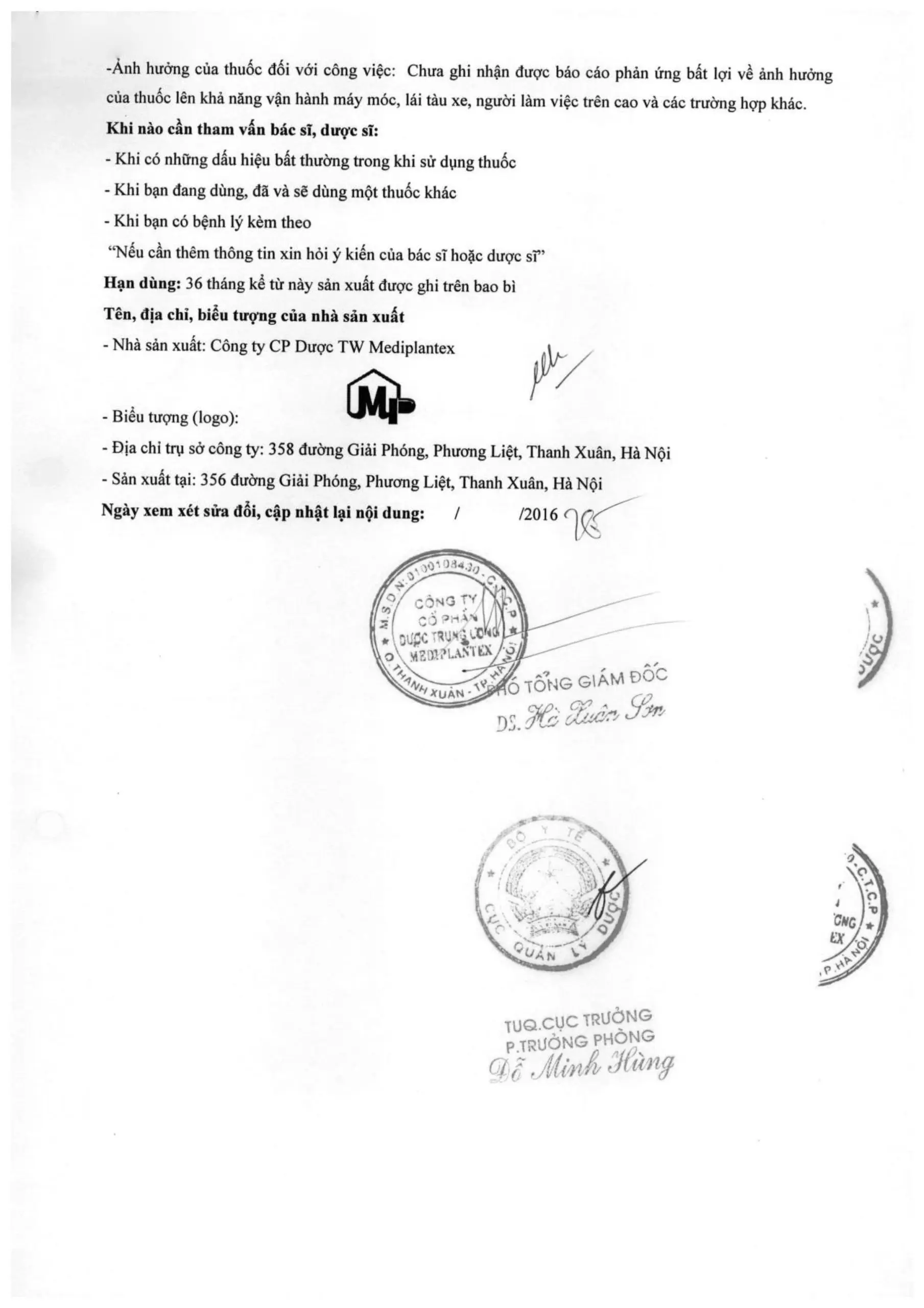 - Chưa ghi nhận được báo cáo phản ứng bất lợi về ảnh hưởng của thuốc lên khả năng vận hành máy móc, lái tàu xe, người làm việc trên cao và các trường hợp khác.