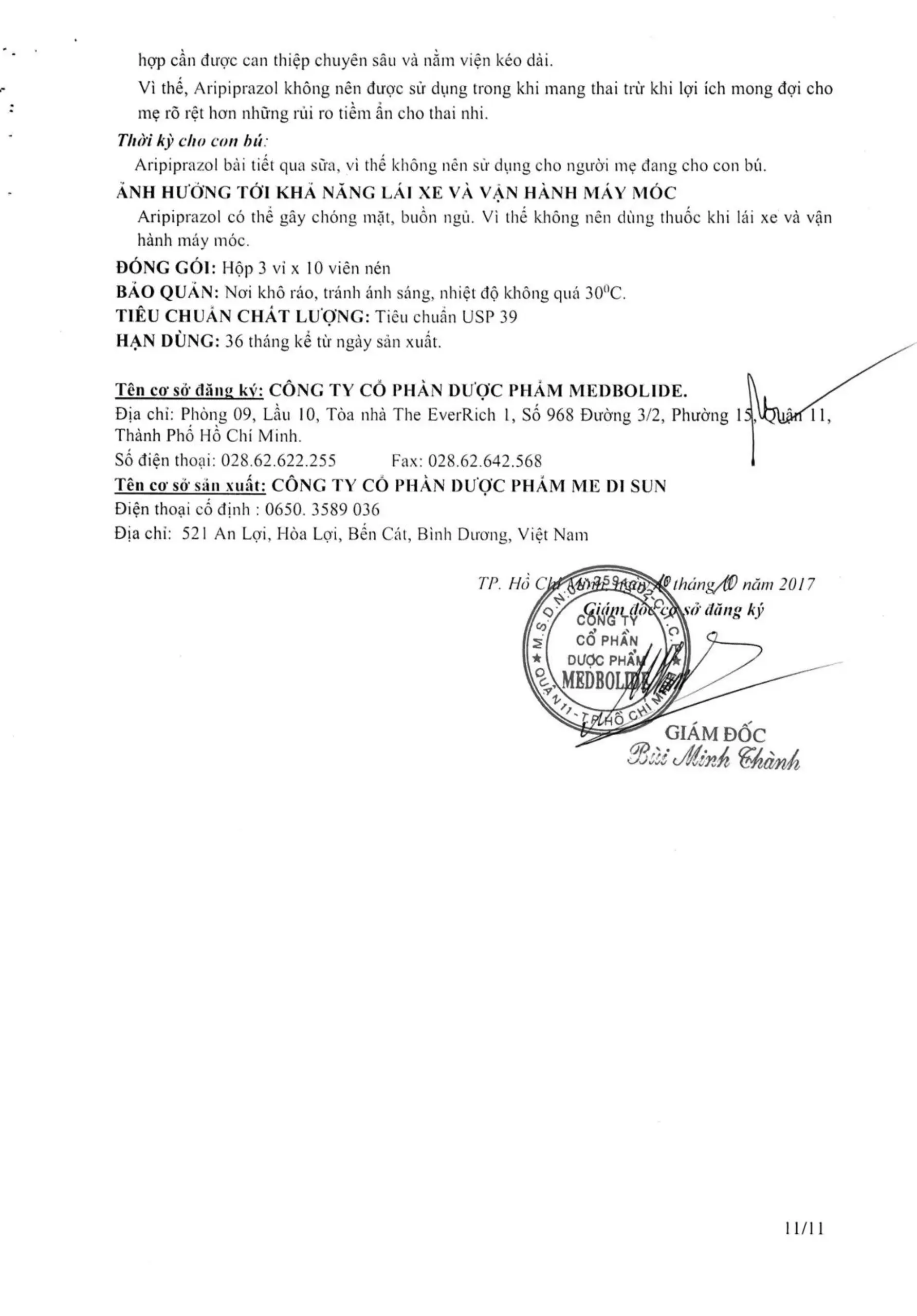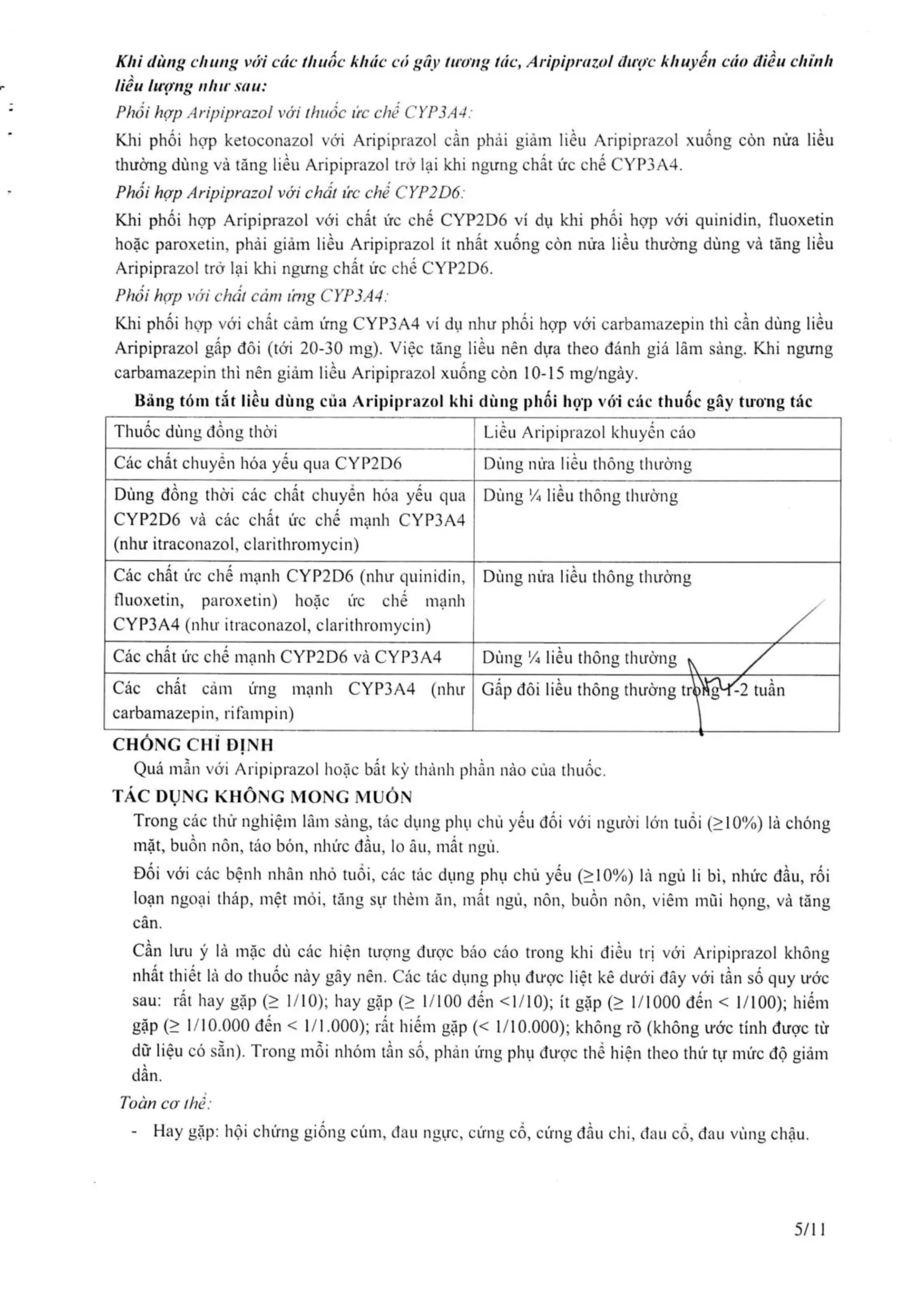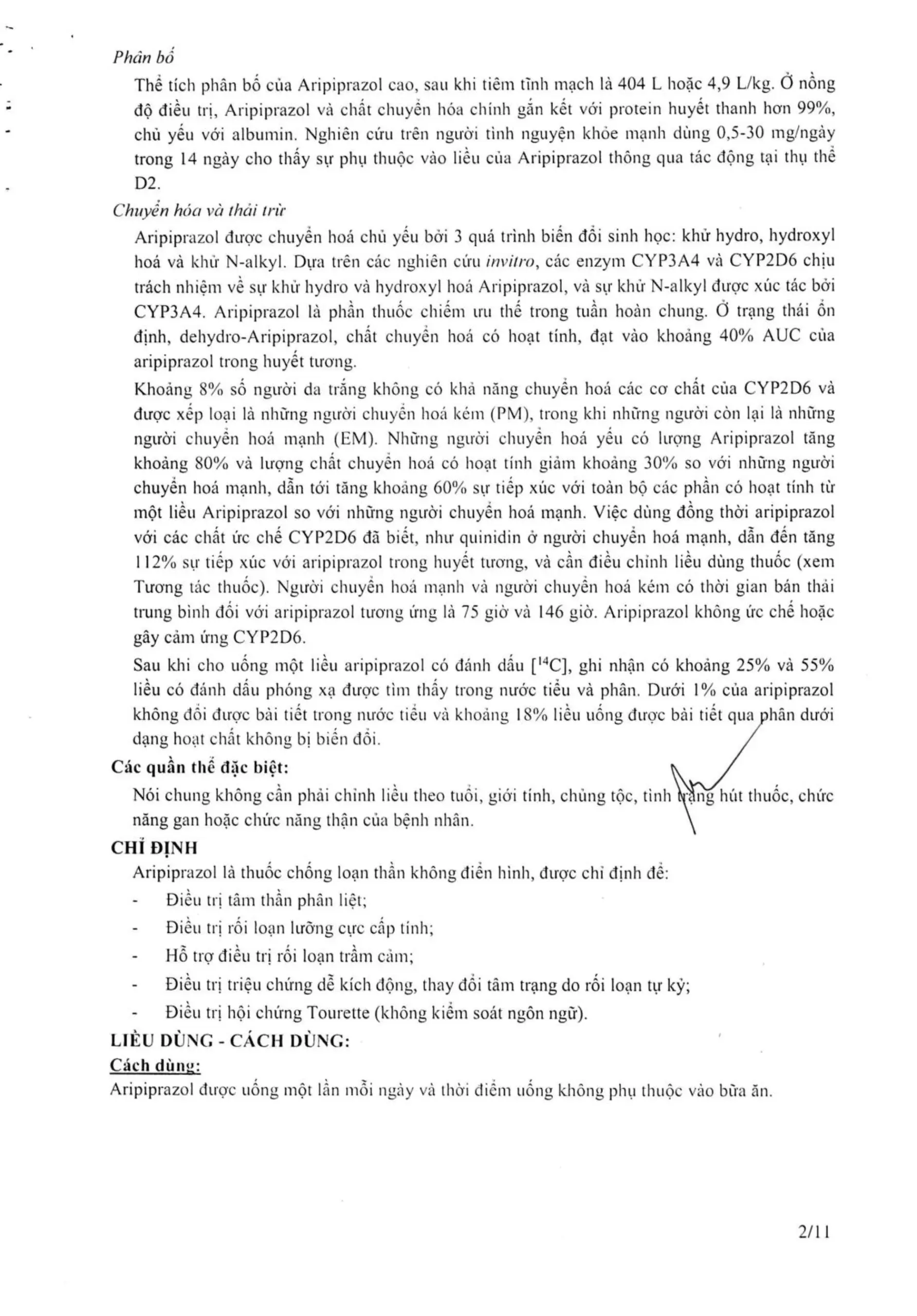 - Liều đích được khuyến cáo của Aripiprazol là 10 mg/ngày.