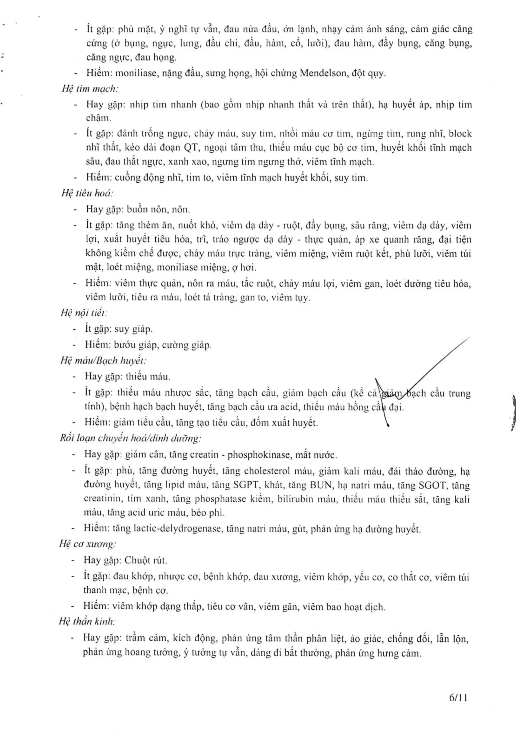 - Rối loạn chuyển hóa/dinh dưỡng: Phù, tăng đường huyết, tăng cholesterol máu.